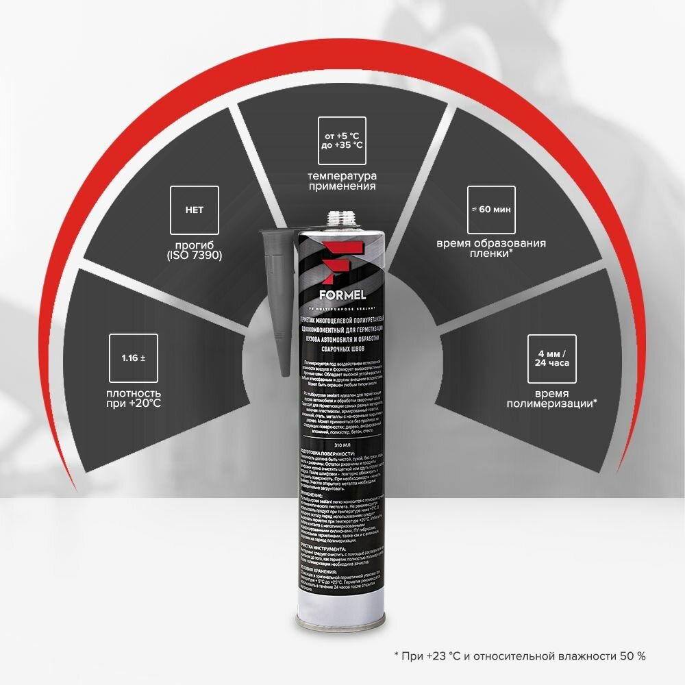 Купить Герметик, Герметик кузовной шовный полиуретановый 310 мл серый / FORMEL PU MULTIPURPOSE SEALANT / клей герметик для кузова авто, окрашиваемый