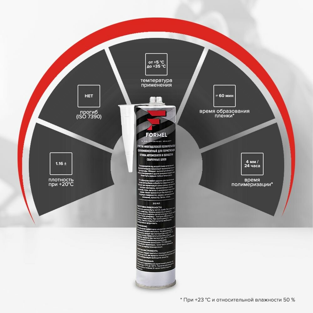 Герметик, Герметик кузовной шовный полиуретановый 310 мл серый / FORMEL PU MULTIPURPOSE SEALANT / клей герметик для кузова авто, окрашиваемый