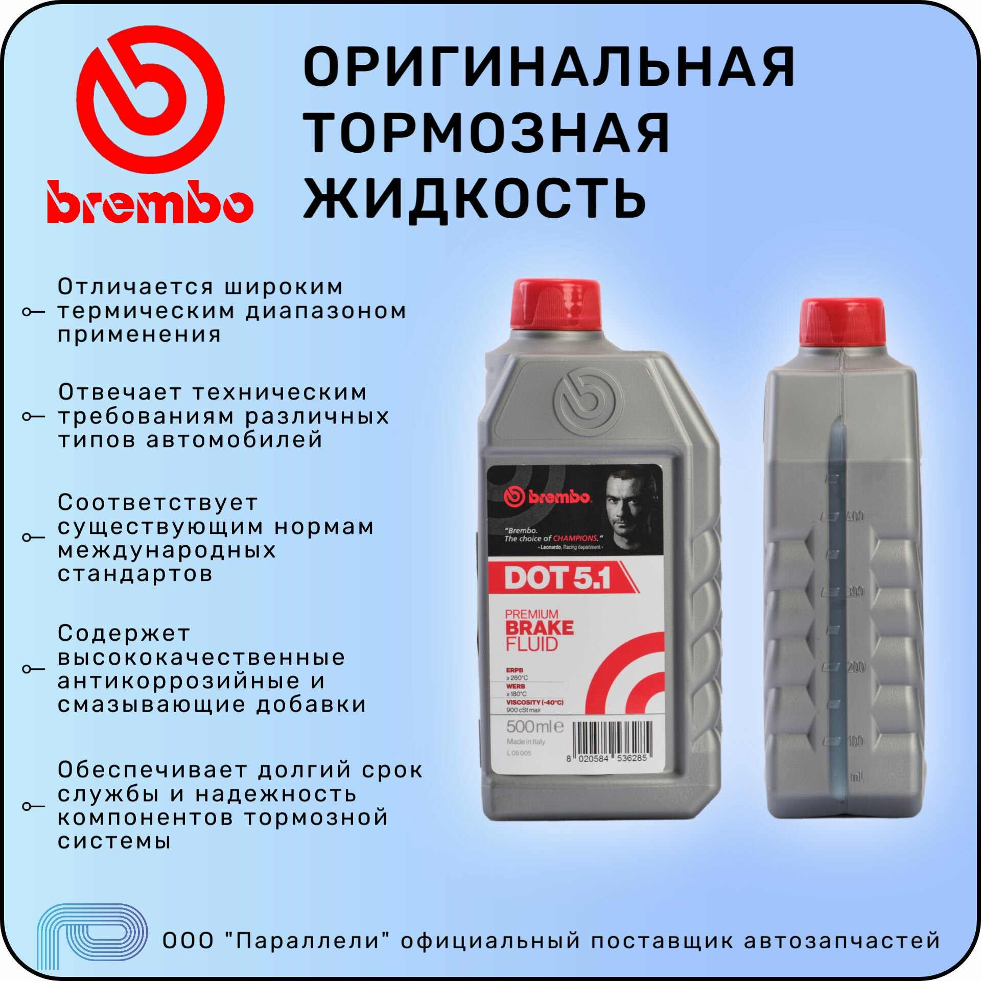 Жидкость тормозная BREMBO Premium Brake Fluid DOT5.1 0,5 л / брембо интересное: