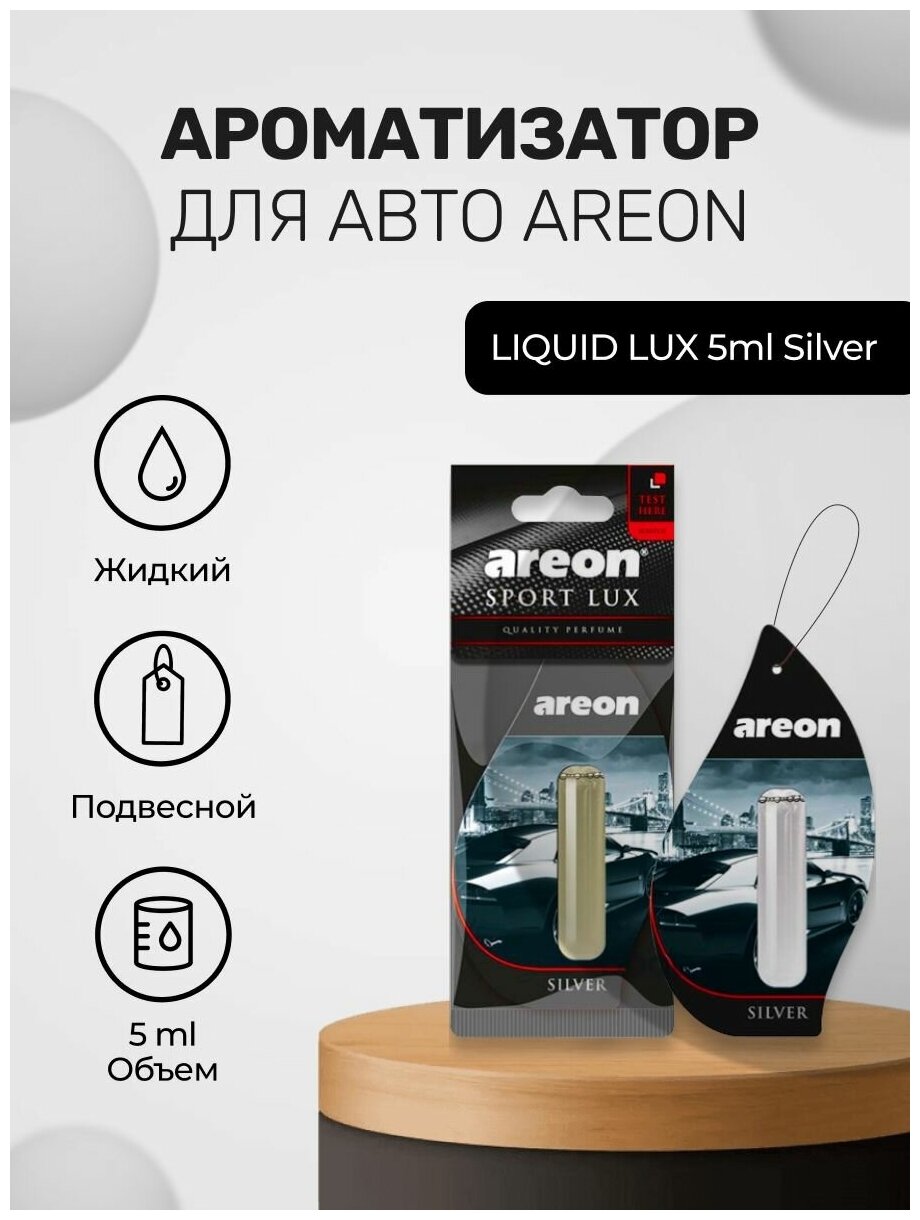 Купить Ароматизатор подвесной сухой Areon LUX SPORT LIQUID с капсулой 5мл. Silver (Серебро)