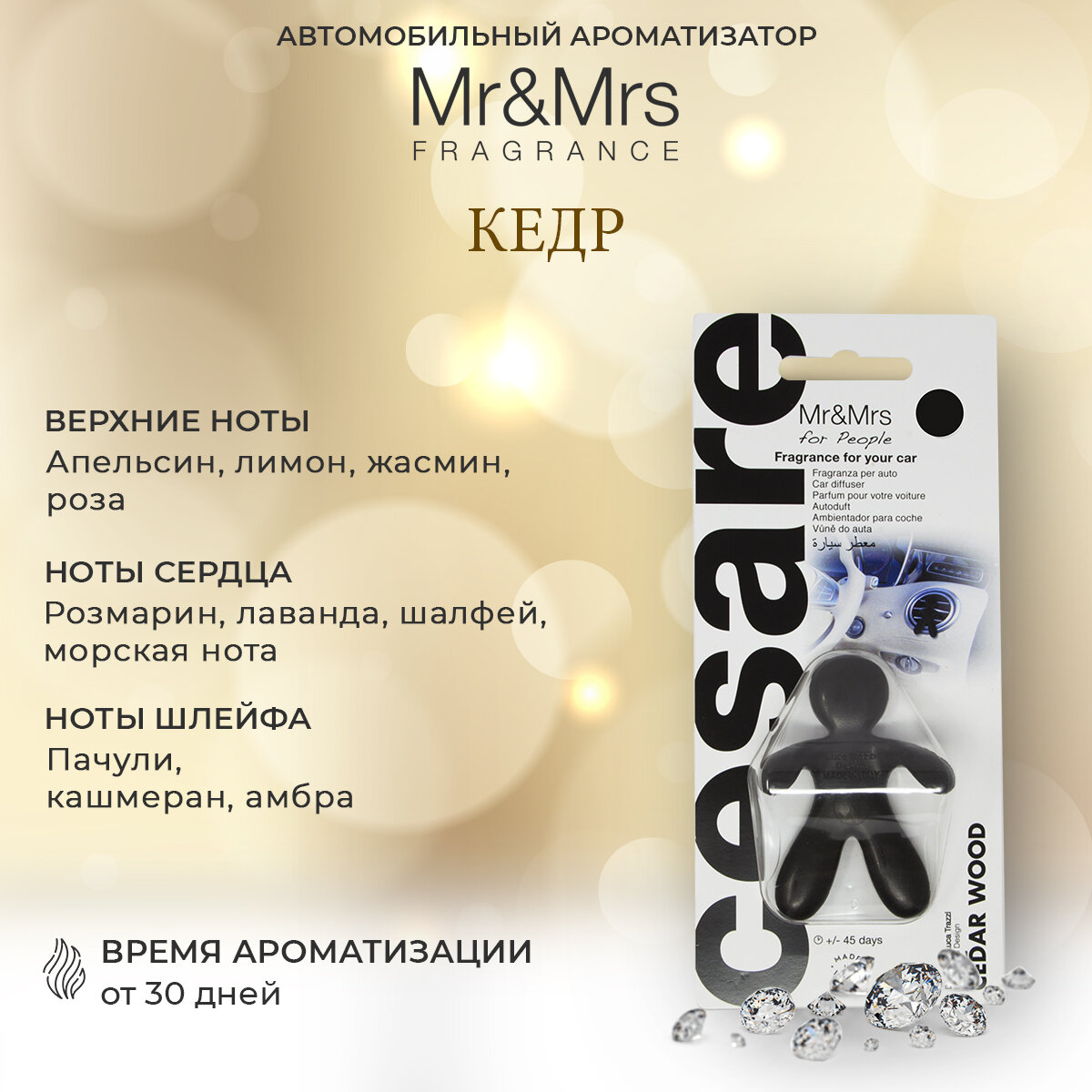Mr&Mrs Fragrance Ароматизатор для автомобиля CESARE BLISTER золото NOBLE OUD Благородный уд