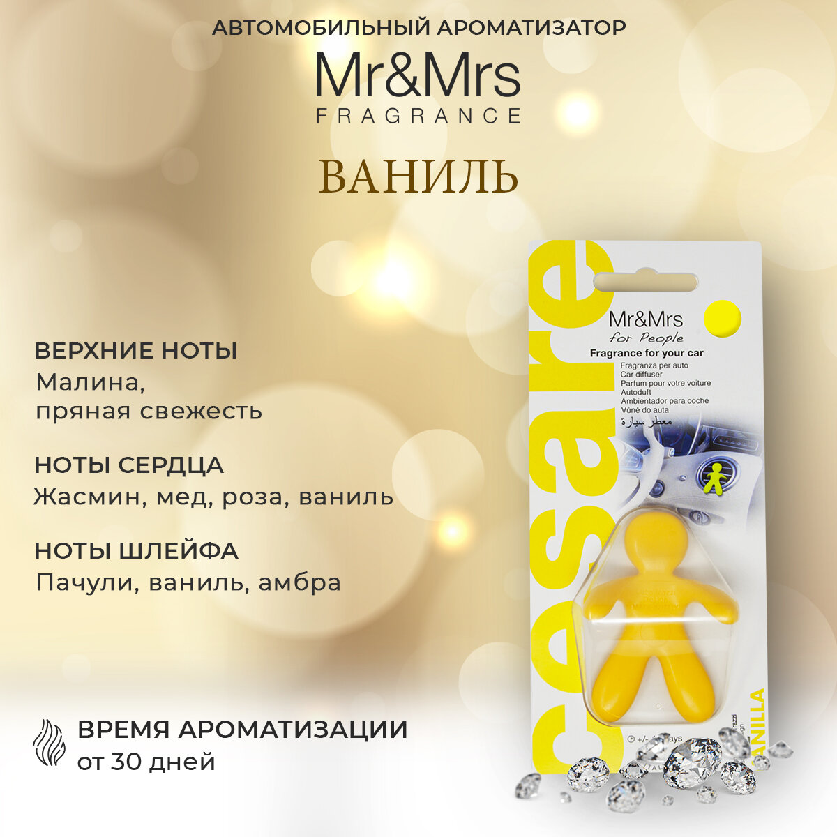 СохранитьАвтомобильный ароматизатор Mr&Mrs Fragrance Cesare Vanilla (Ваниль) желтый интересное: