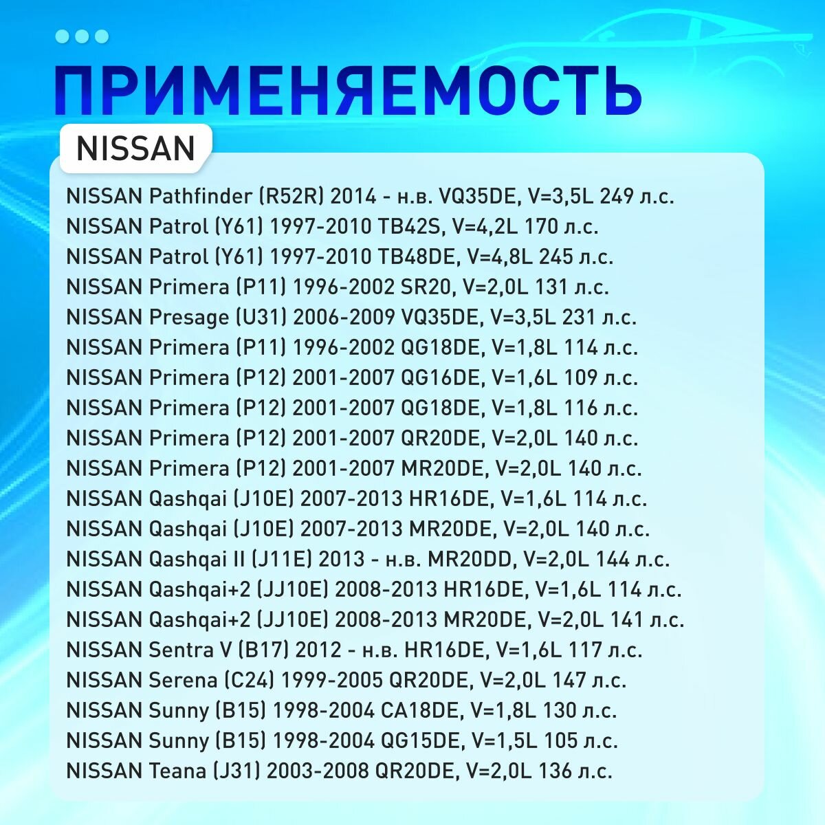 | Модель автомобиля | ASIA Rocsta / Fiat Albea / Ford Econovan / Great Wall Hover / Honda Insight / Hyundai Atos / Hyundai Atos Prime / Hyundai Getz / Hyundai Solaris / Infiniti EX / Infiniti FX / Infiniti G25 / Infiniti G35 / Infiniti G37 / Infiniti I30 / Infiniti M / Infiniti M37 / Infiniti QX4 / Infiniti QX56 / Kia Carens / Kia Carnival / Kia Clarus / Kia Picanto / Kia Pride / Kia Rio / Kia Roadster / Kia Sephia / Kia Shuma / Kia Spectra / Kia Sportage / LADA X-RAY / Mazda 121 / Mazda 2 / Mazda 3 / Mazda 323 / Mazda 626 / Mazda Demio / Mazda MPV / Mazda MX-3 / Mazda MX-5 / Mazda MX-6 / Mazda Premacy / Mazda RX-7 / Mazda RX-8 / Mazda Xedos / Mitsubishi Carisma / Mitsubishi Colt / Mitsubishi Galant / Mitsubishi Outlander / Mitsubishi Pajero / Nissan 200SX / Nissan 350Z / Nissan 370Z / Nissan Almera / Nissan Almera Classic / Nissan Almera Tino / Nissan Altima / Nissan Cube / Nissan Juke / Nissan Maxima / Nissan Micra / Nissan Murano / Nissan NV200 / Nissan Note / Nissan Pathfinder / Nissan Patrol / Nissan Primera / Nissan Qashqai / Nissan Qashqai+2 / Nissan Sentra / Nissan Teana / Nissan Tiida / Nissan Tino / Nissan X-Trail / Renault Clio / Renault Duster / Renault Espace / Renault Fluence / Renault Grand Scenic / Renault Kaptur / Renault Koleos / Renault Laguna / Renault Megane / Renault Scenic / Renault Vel Satis / Subaru Forester / Subaru Impreza / Subaru Justy / Subaru Legacy / Subaru Libero / Subaru Outback / Subaru SVX / Subaru Vivio |