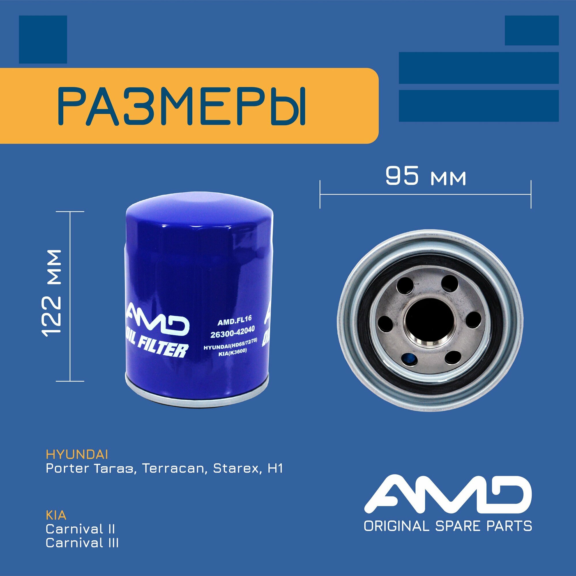 Фильтр масляный 2630042040 AMD. FL16 для HYUNDAI Porter Tagaz Terracan HP 2,5 TD 2,9 CRDi интересное: