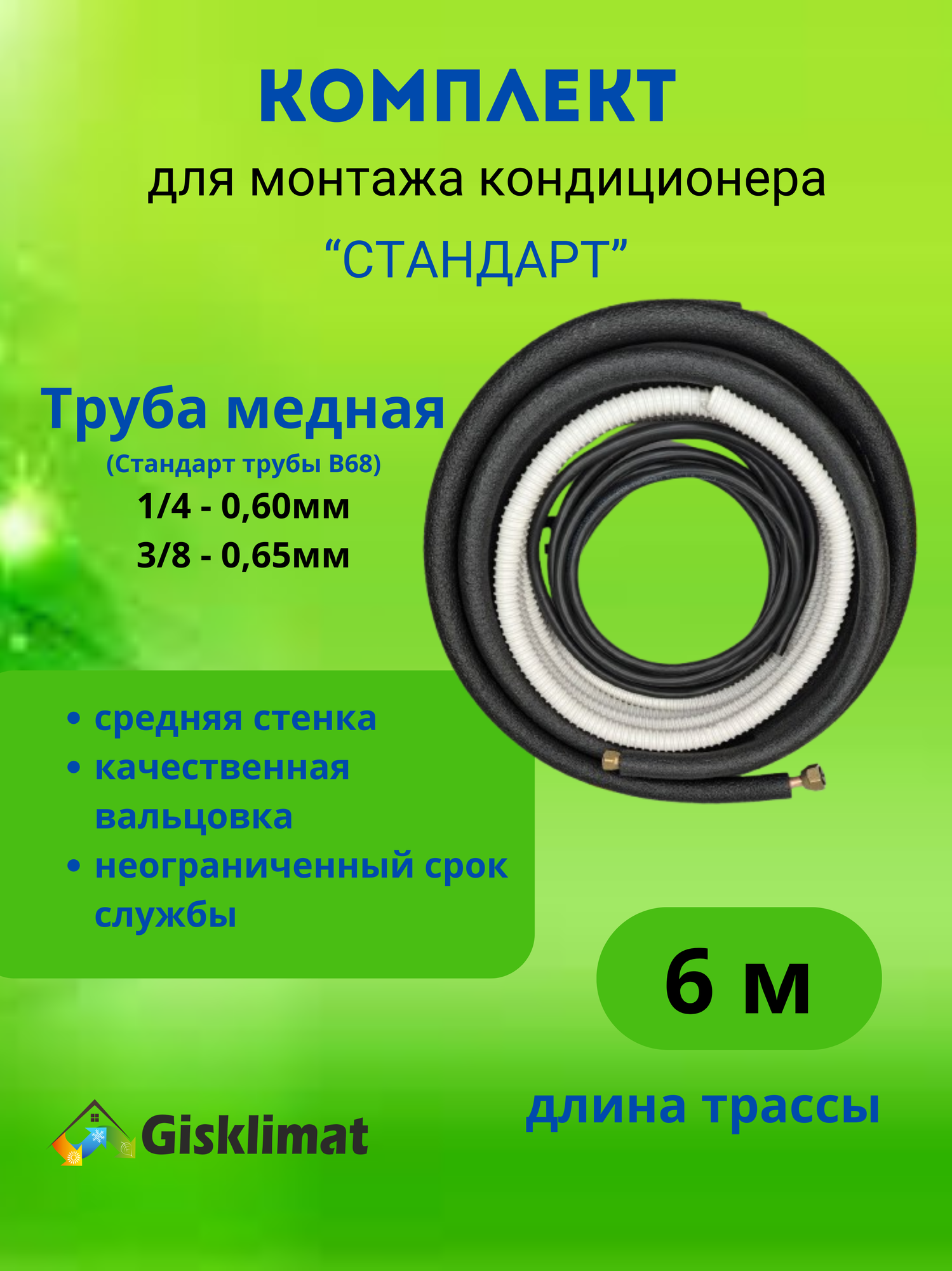Готовый комплект 1/4 и 3/8 - 6 м, для монтажа кондиционера, трасса для кондиционера