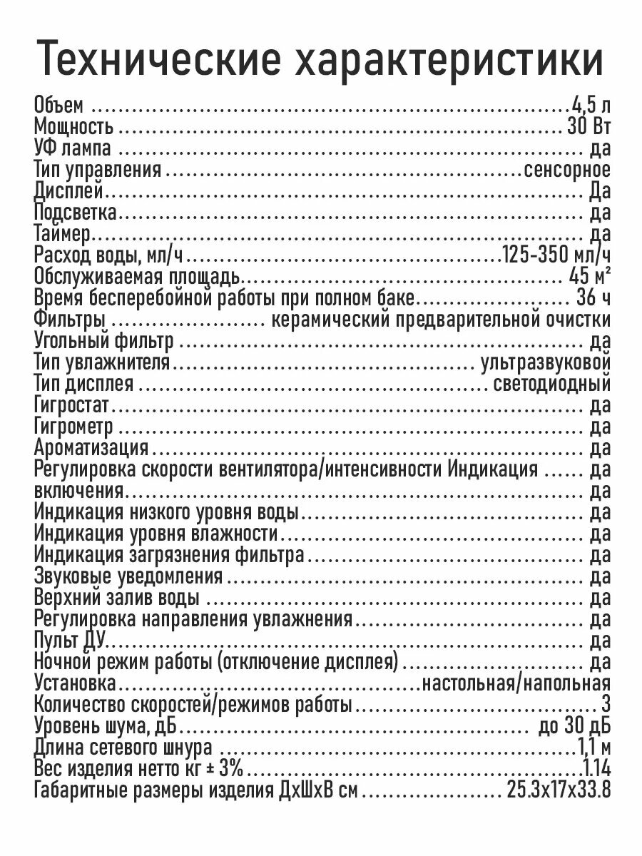 | Тип увлажнителя | ультразвуковой |