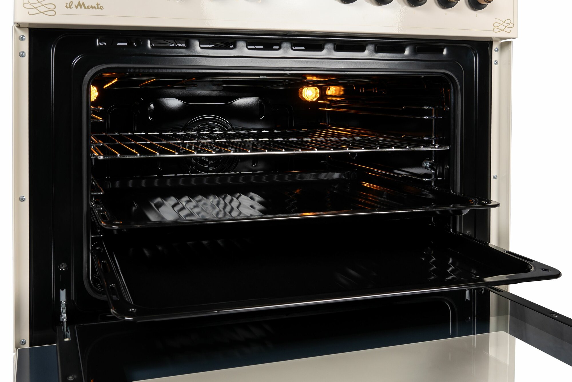 Газовая плита, с электрической духовкой, газ-контроль, конвекция, чугунные решетки, il Monte FO-GE9001 интересное: