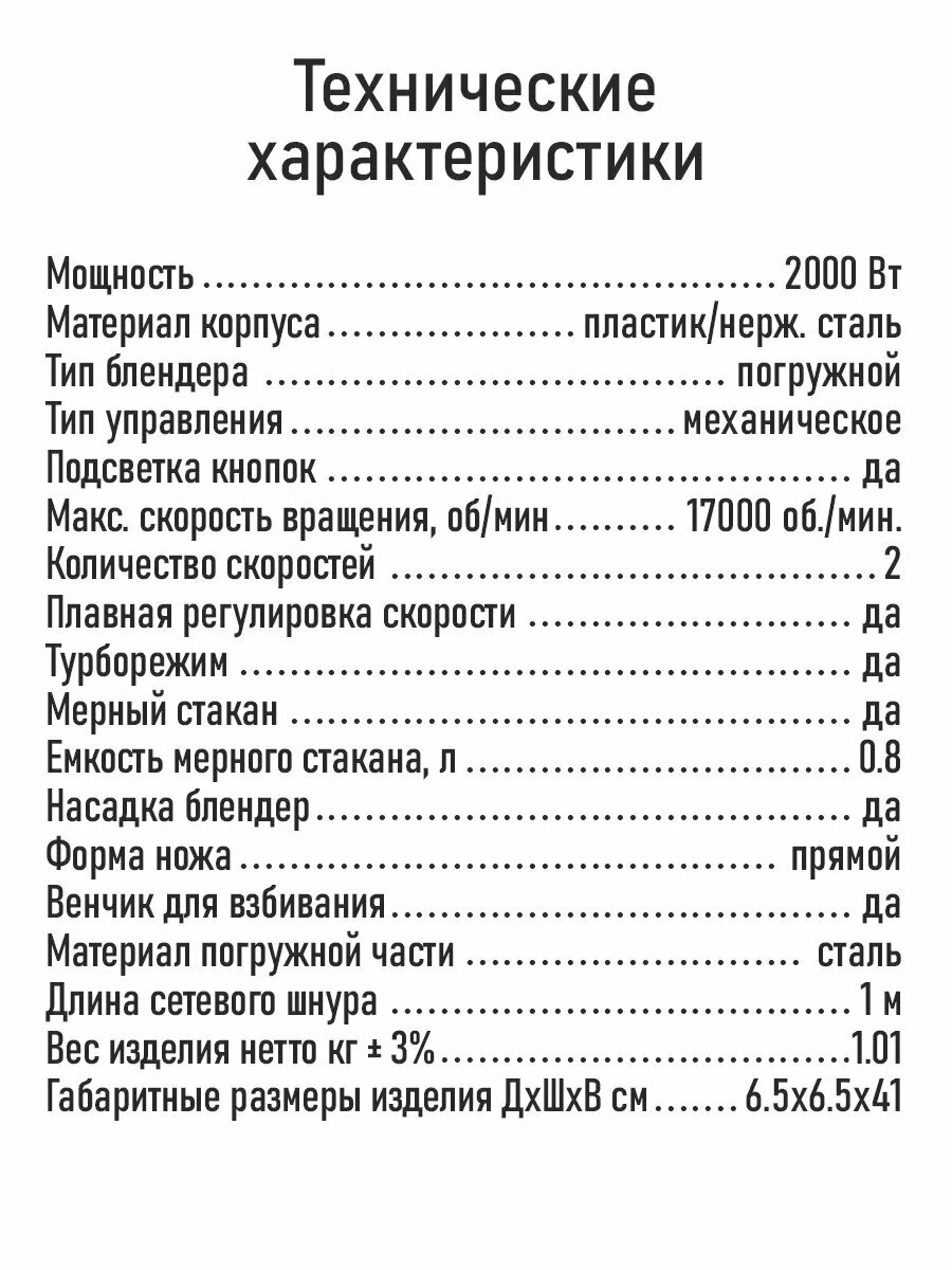 Блендер погружной с насадками для смузи 2000 Вт