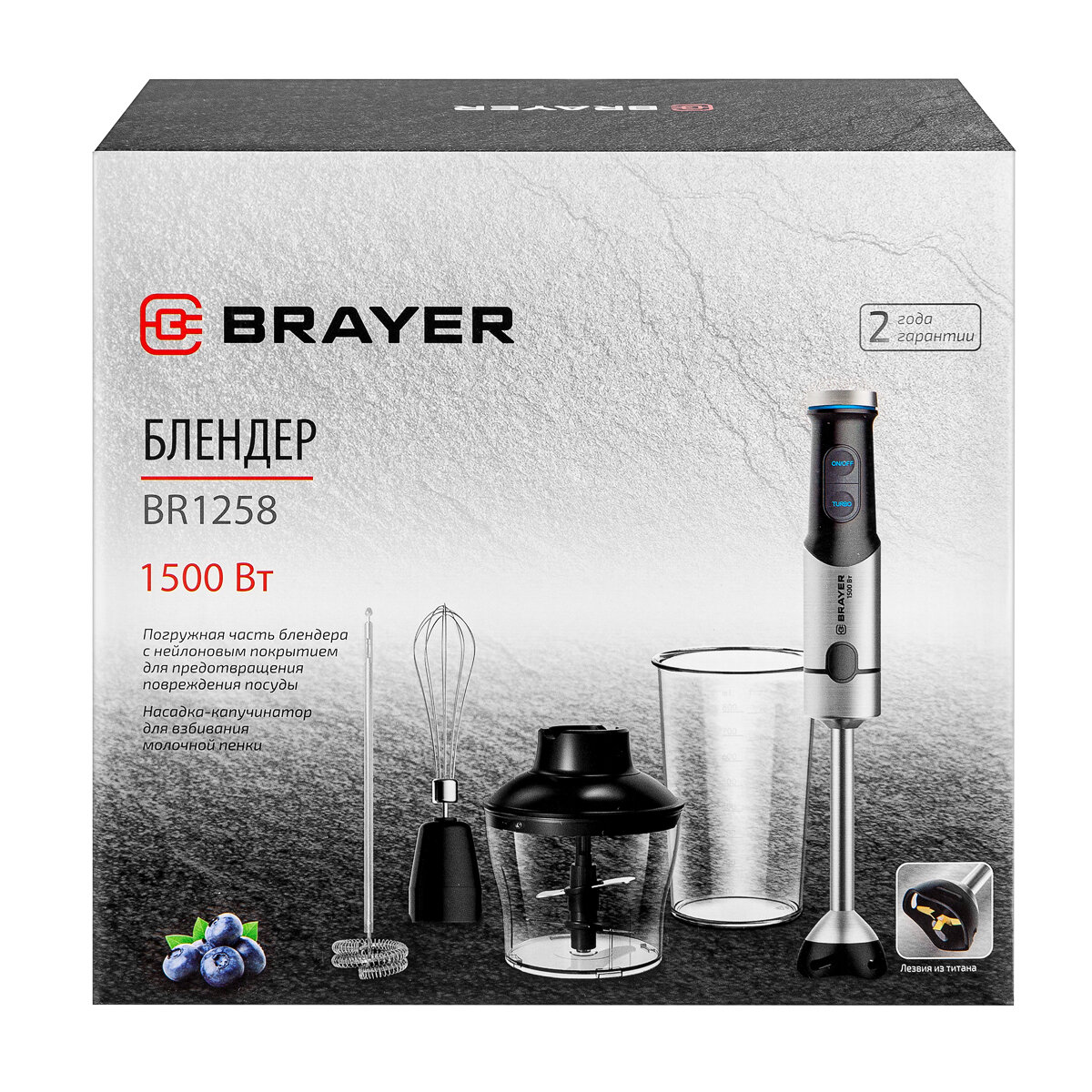 Блендер погружной BRAYER BR1256, 1500 Вт, черный/серебристый, нержавеющая сталь