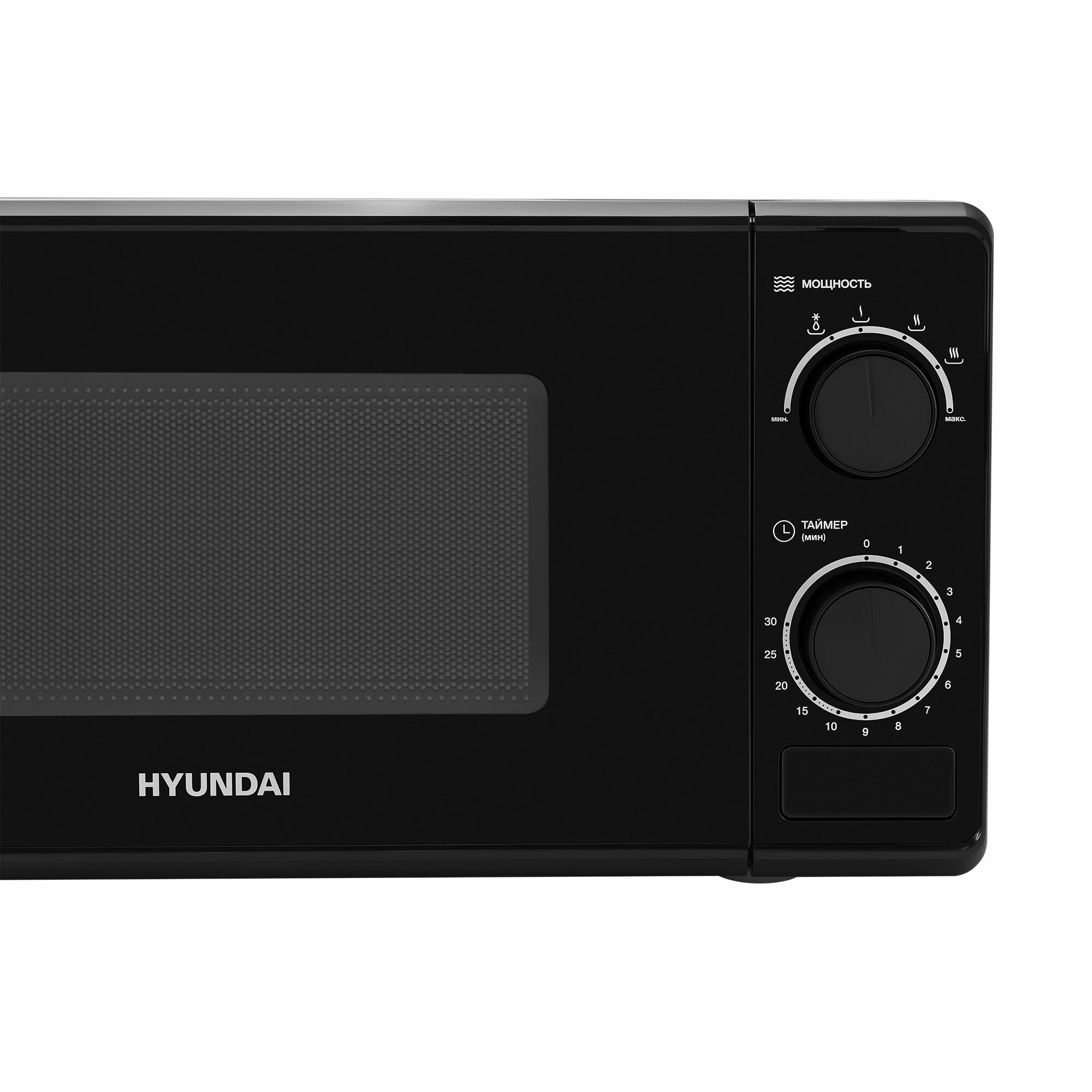 Купить Микроволновая печь Hyundai HYM-M2096 черный, с механическим управлением, поворотным столом 24,5 см, объем камеры 20 л, мощность 700 Вт, открывание дверцы кнопкой, функции разогрева и разморозки