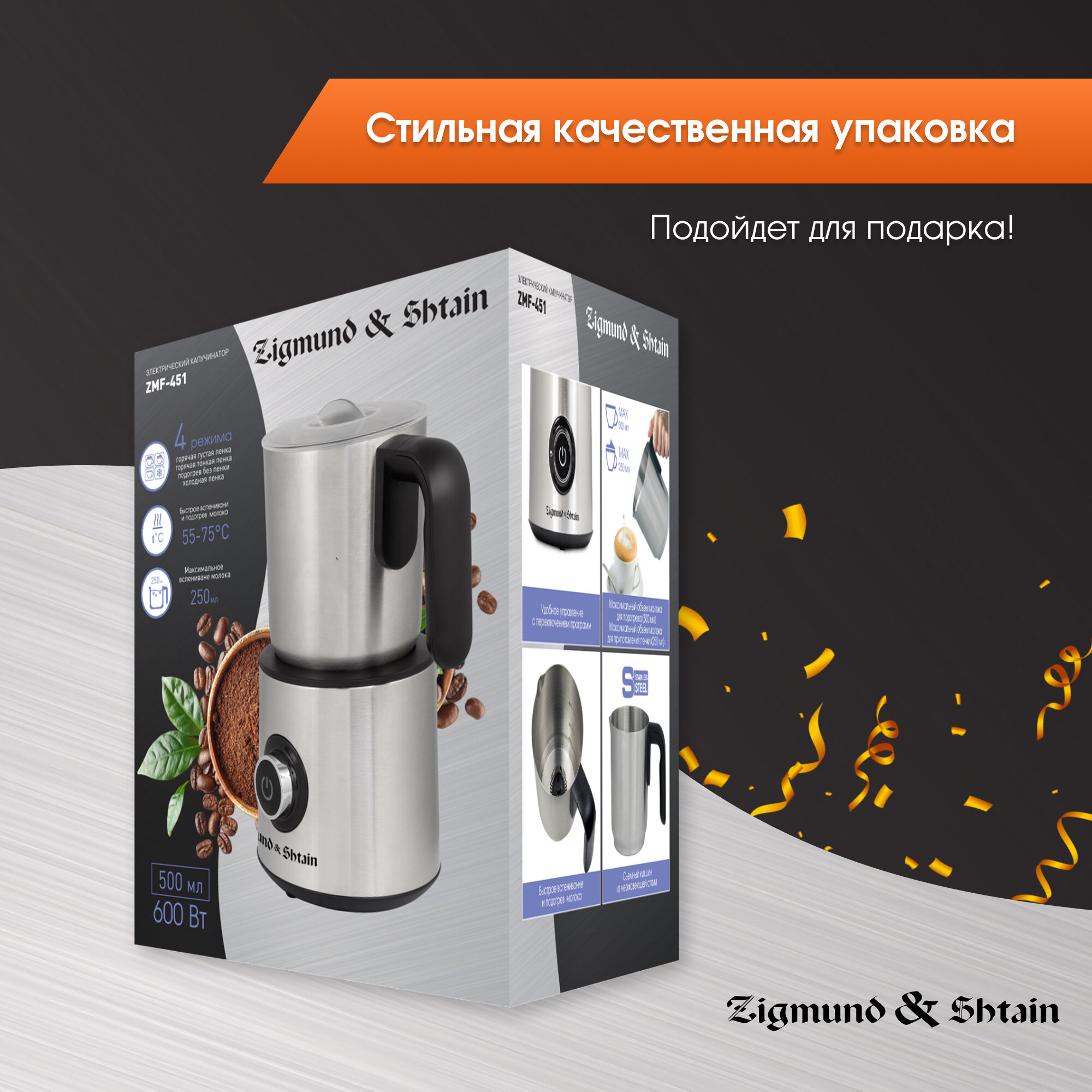 Капучинатор электрический Zigmund & Shtain ZMF-451, 4 режима, 600 Вт, нержавеющая сталь интересное:
