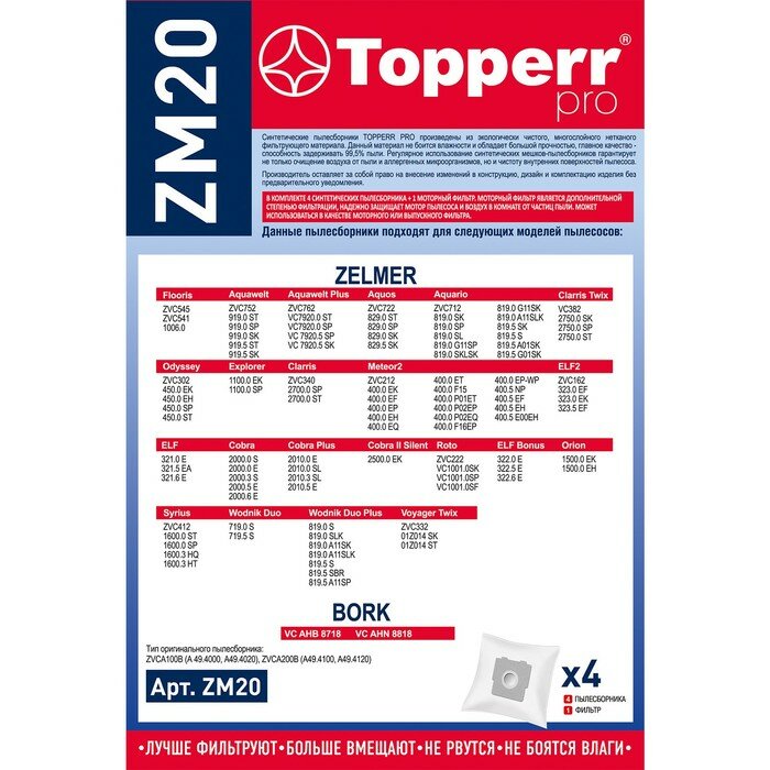 Topperr ZM20 Синтетические пылесборники пылесоса ZELMER ZM 20