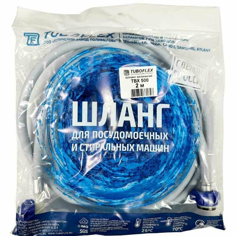Шланг наливной Tuboflex 2.0 метра для стиральных и посудомоечных машин в упаковке