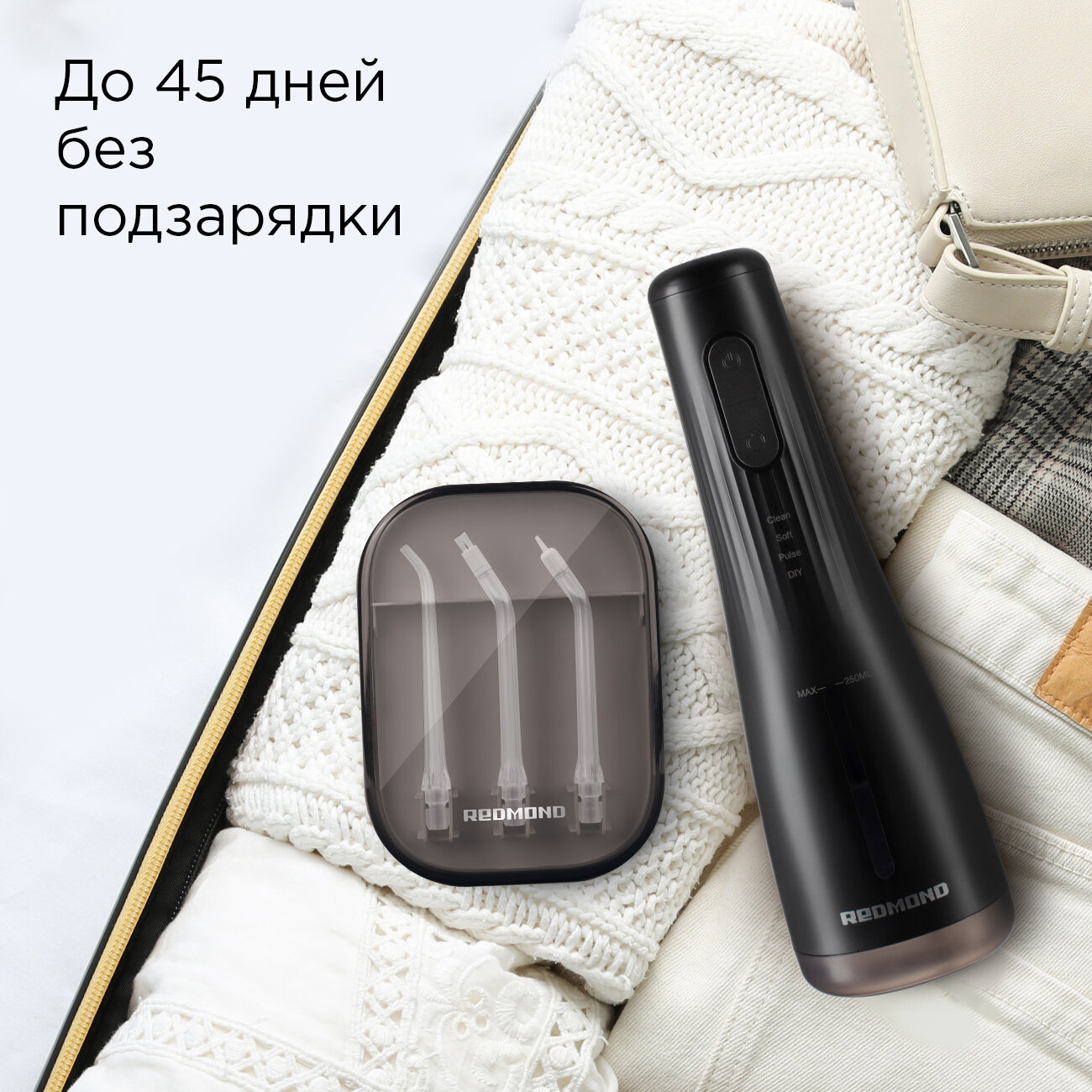 Ирригатор РЕДМОНД YR4501, 4 режима чистки, регулировка силы напора интересное: