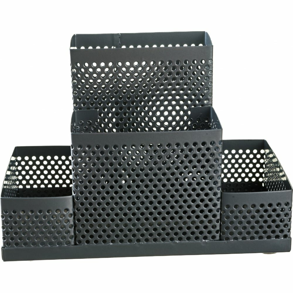 Подставка для канцелярских принадлежностей Attache 4-х секционная, Башня, металлическая сетка, 160*110*80 мм, черная