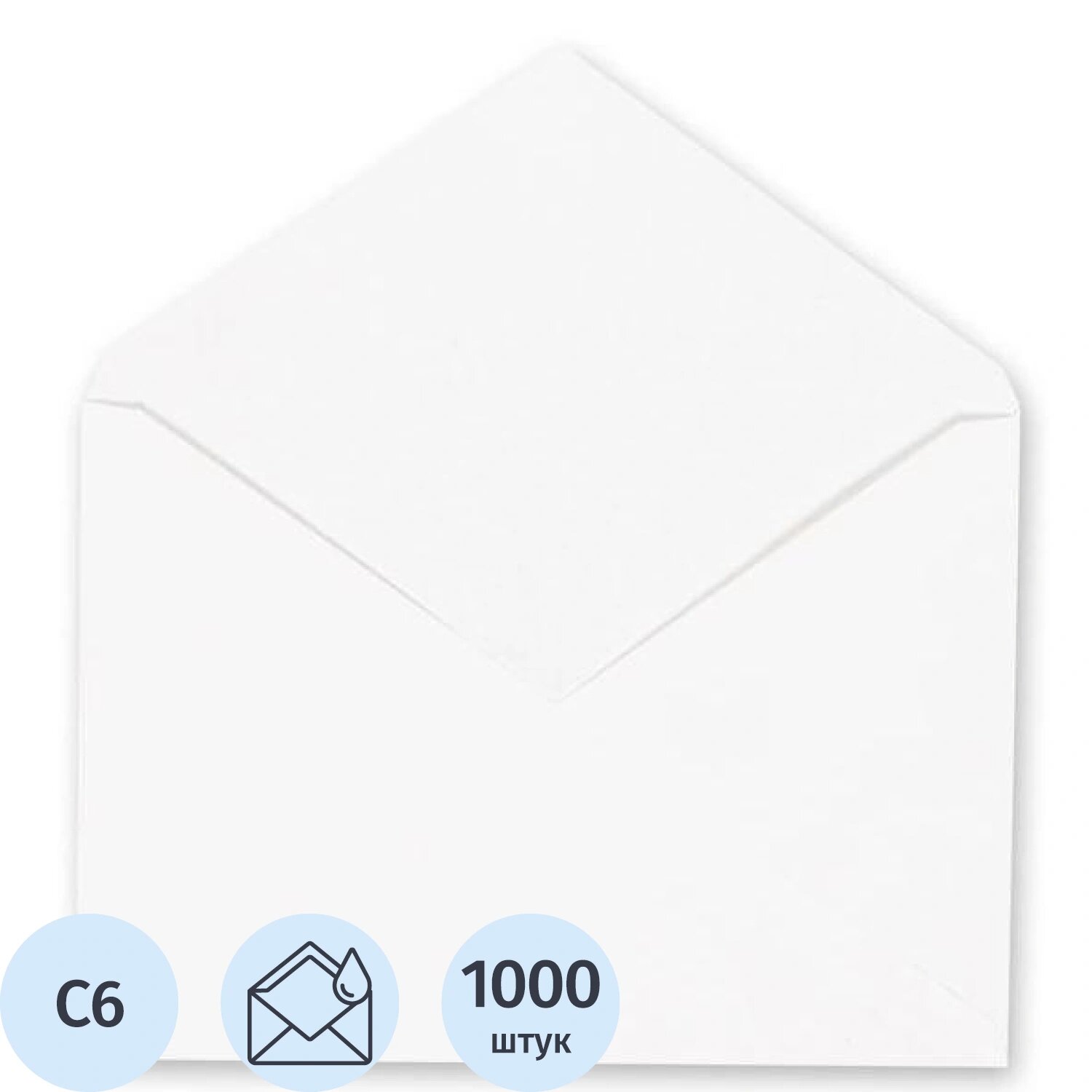 Конверты С6 (114х162 мм), клей, 80 г/м2, комплект 1000 шт., треугольный клапан