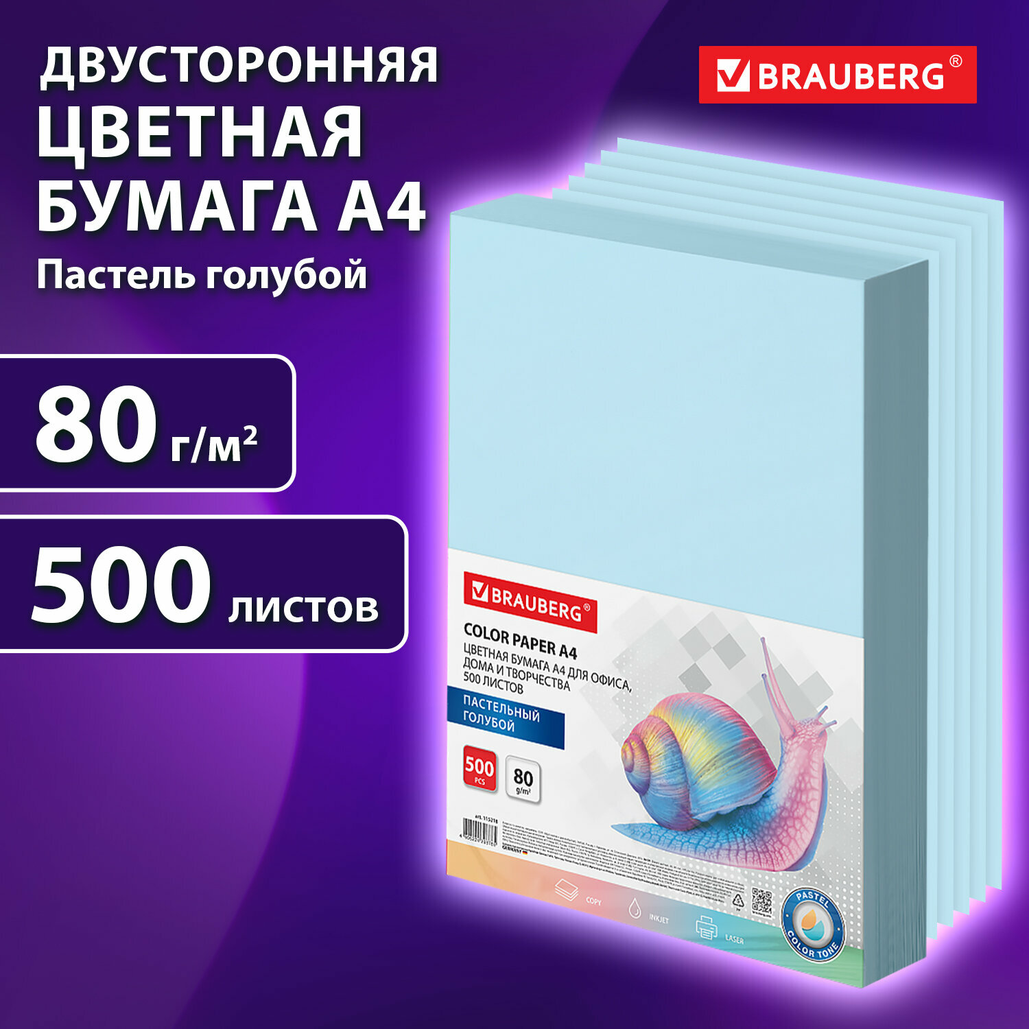 Купить Цветная бумага для принтера А4 набор 500 листов, 80 г м2, голубая, пастель, для печати и офисной техники, Brauberg, 115218