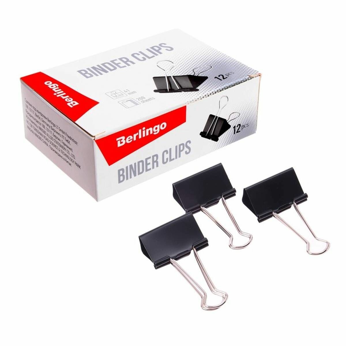 Зажимы для бумаг Berlingo 41 мм, 12 штук, черные (BC1241)