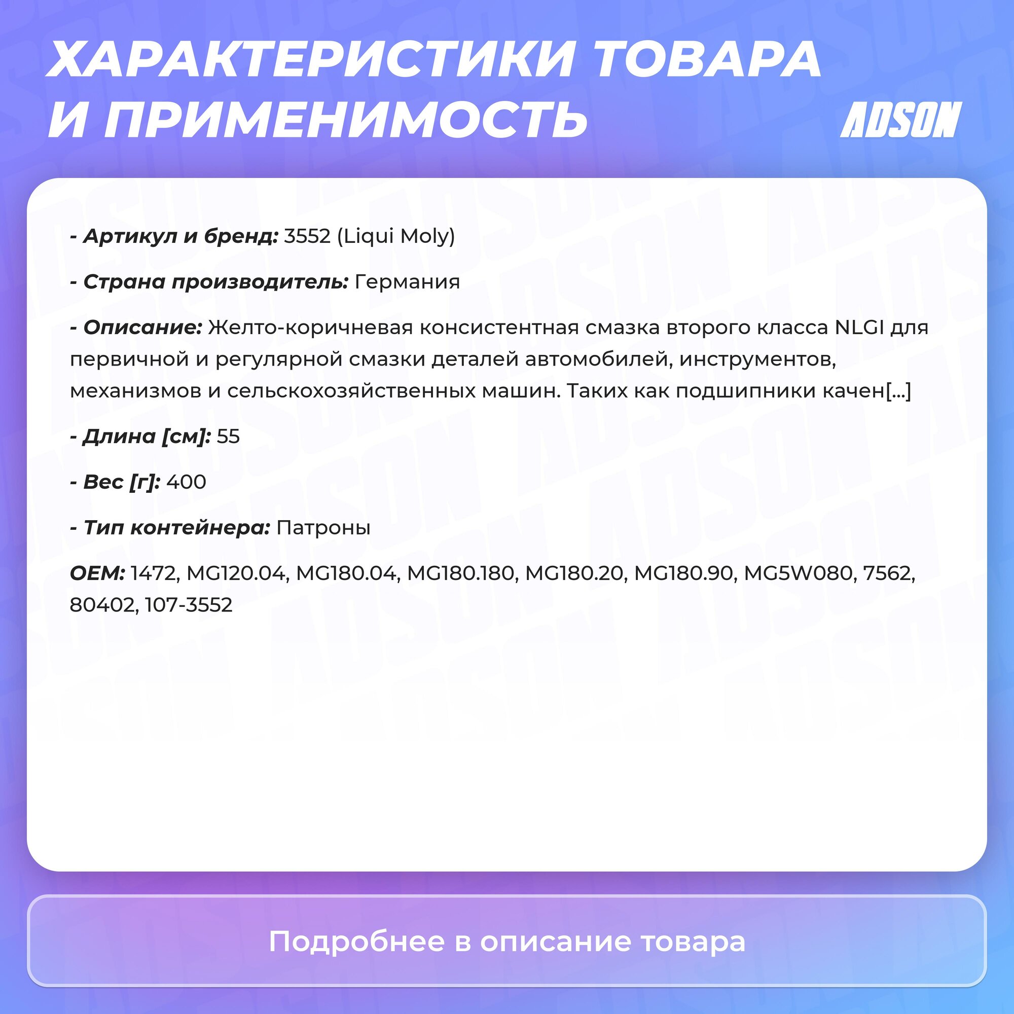 | Отзыв: | Пользуюсь давно, во время Т.О смазываю крестовины и шлицы на карданах на Прадо, доволен |