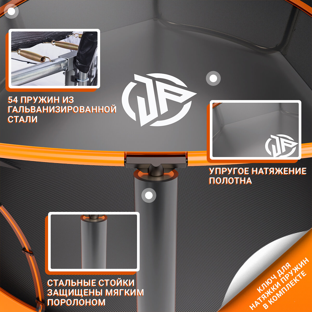 | Особенности | W-образные опоры / баскетбольное кольцо / защита пружин / нижняя защитная сетка / с защитной сеткой / с лестницей / складная конструкция |