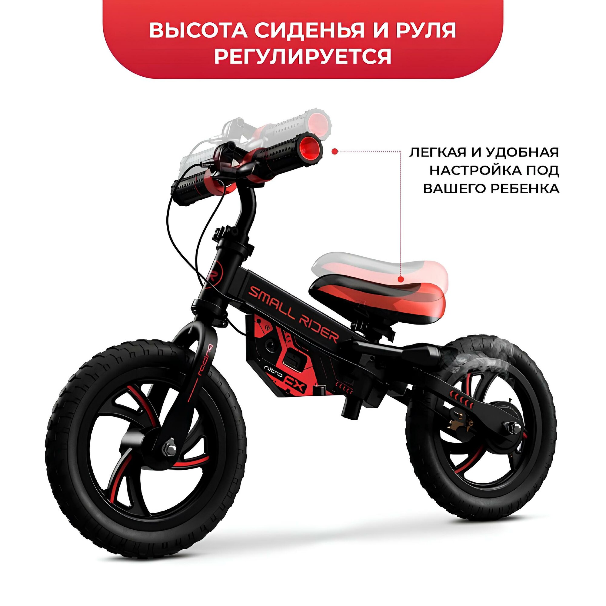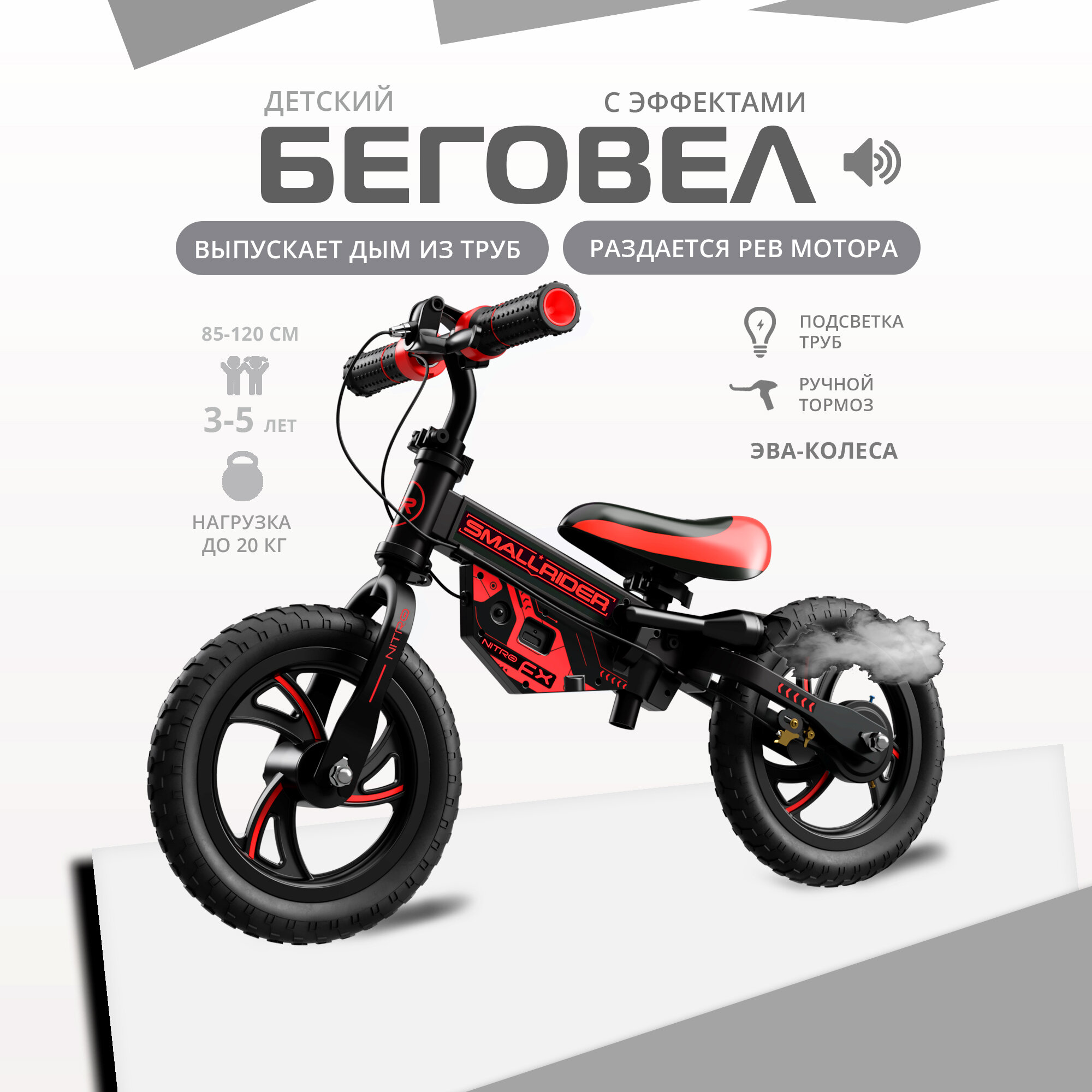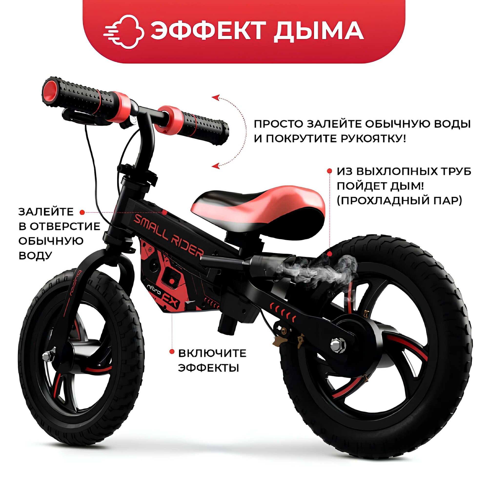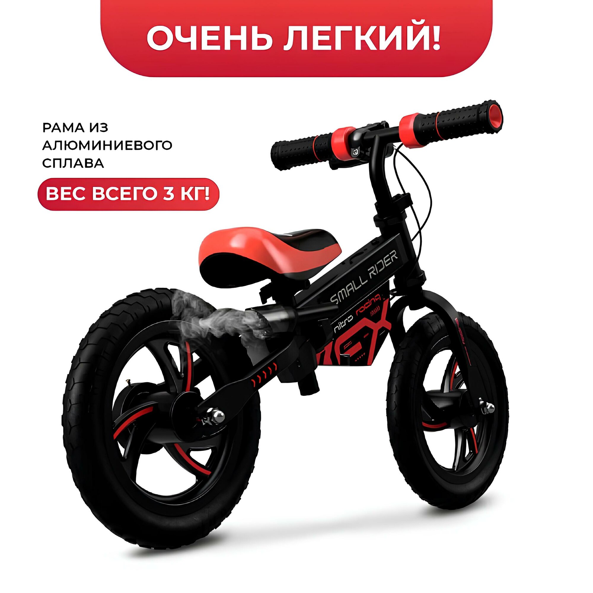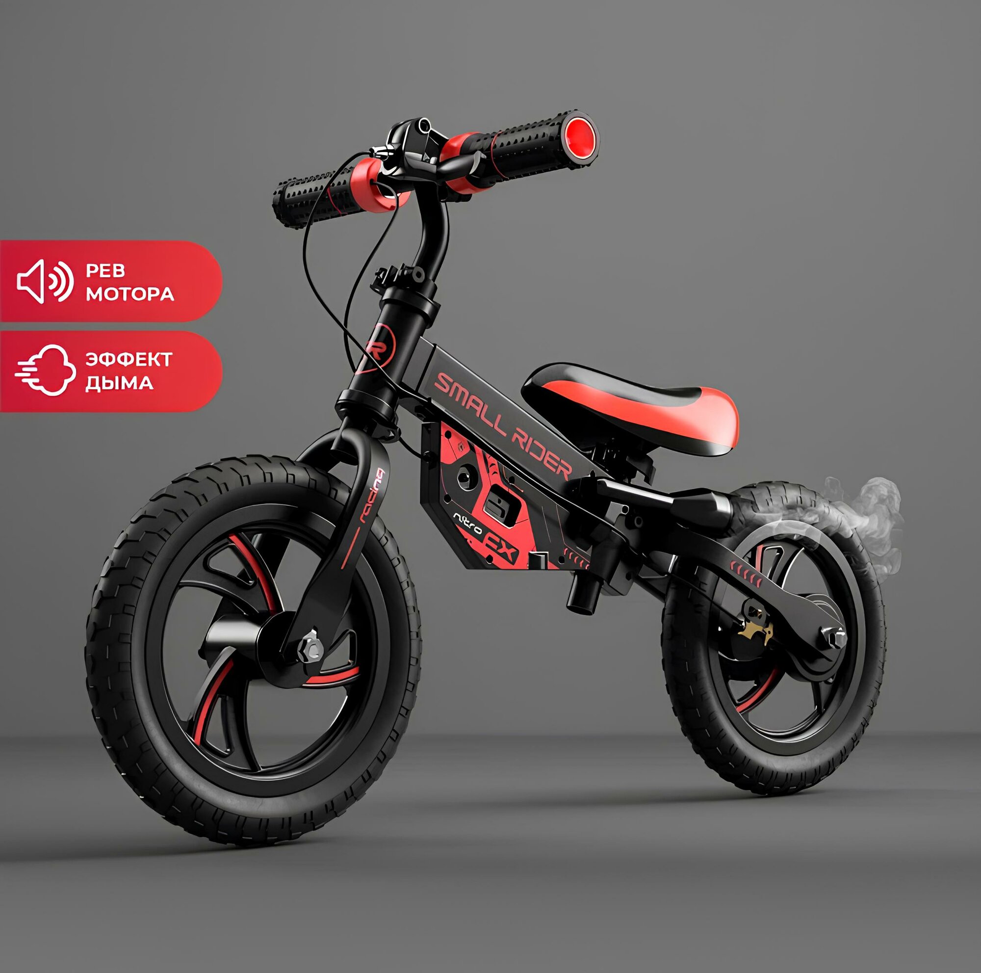 Купить Детский беговел Small Rider NITRO (Красный), EVA колеса, эффект дыма, рев мотора, NITRORED