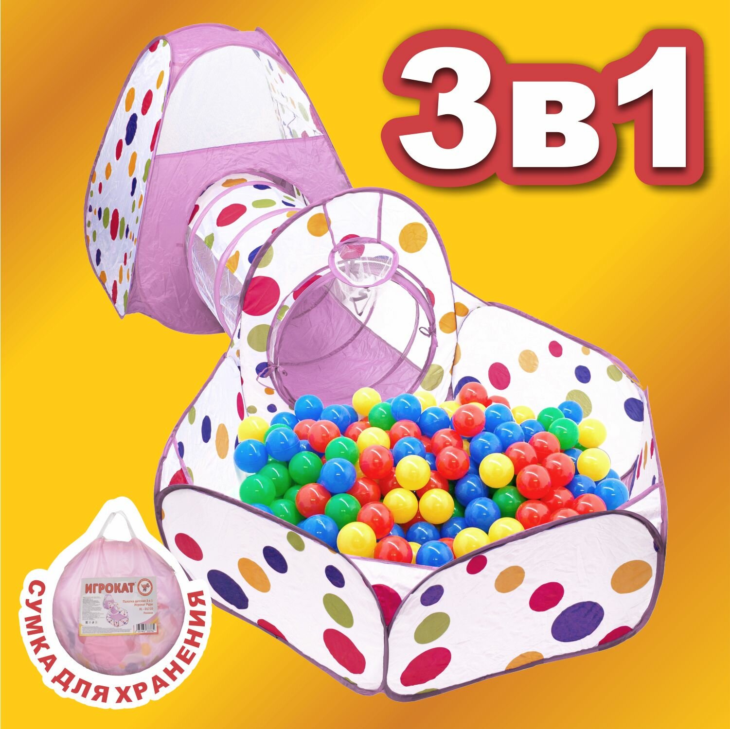 Купить Палатка детская игровая 3 в 1 Игрокат Рури XL, тоннель и манеж, бело-розовая, вигвам детский