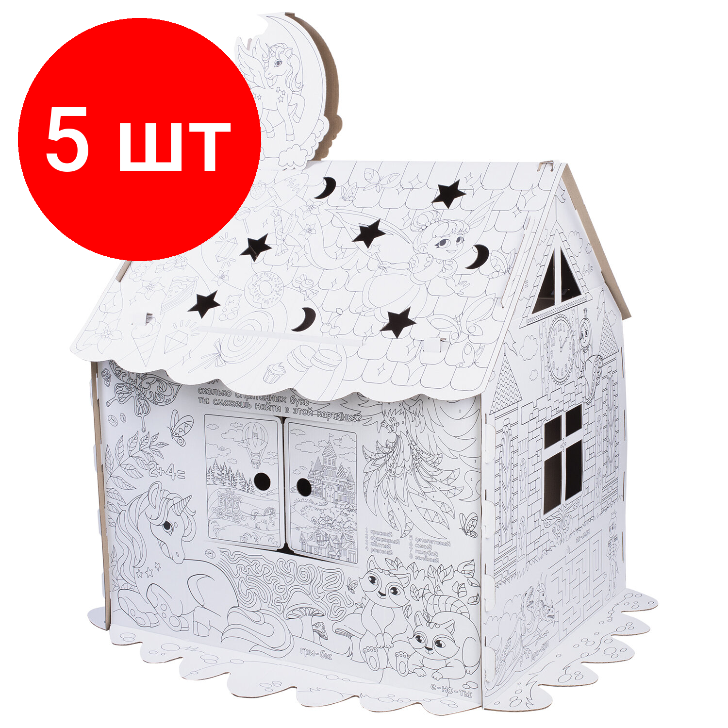 Купить Комплект 5 шт, Картонный игровой развивающий Домик-раскраска "Для маленькой принцессы" высота 130см, BRAUBERG KIDS, 880363
