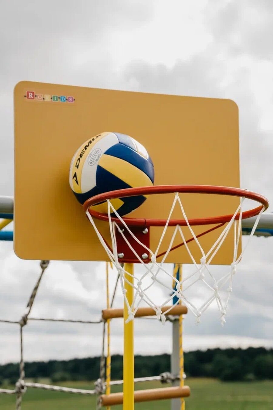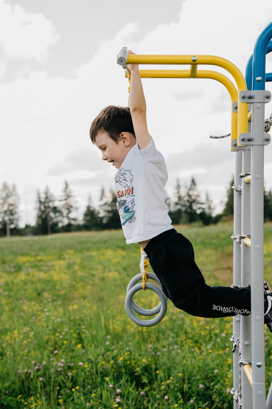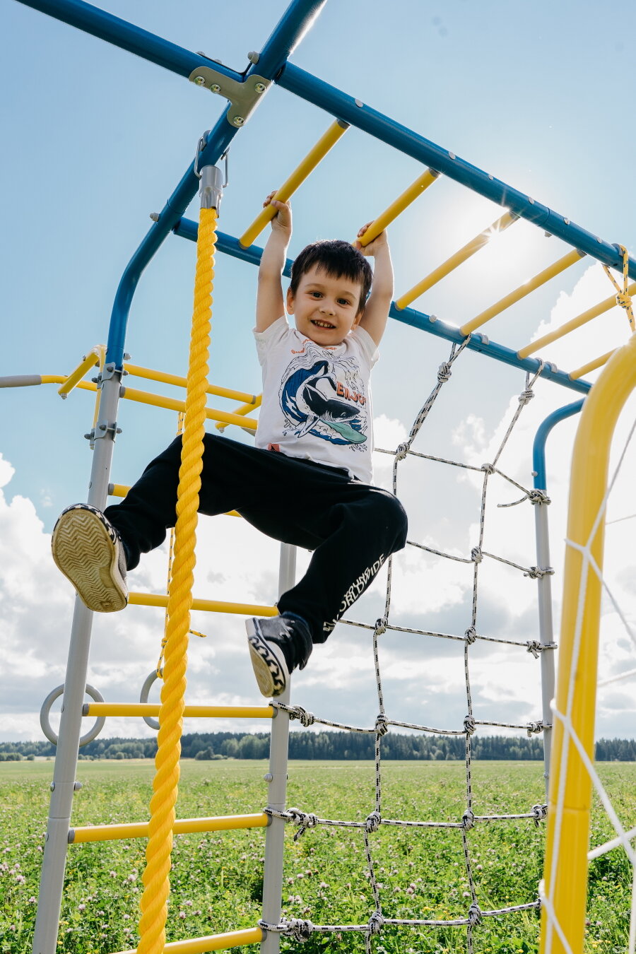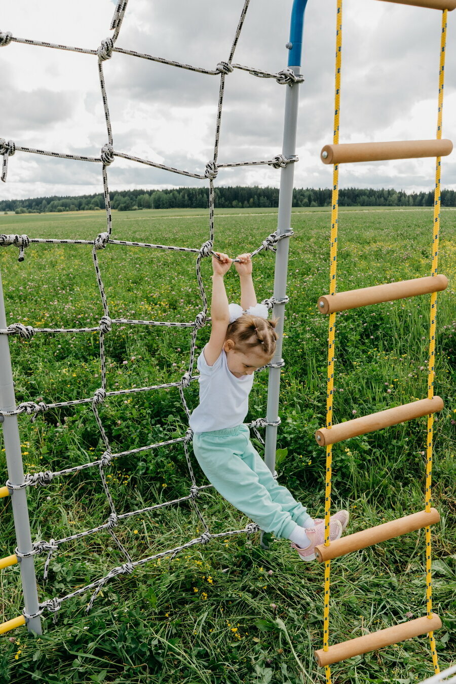 | В комплекте | баскетбольное кольцо, веревочная лестница, ворота, гимнастические кольца, канат, качели, лестница, рукоход, сетка для лазания, турник |