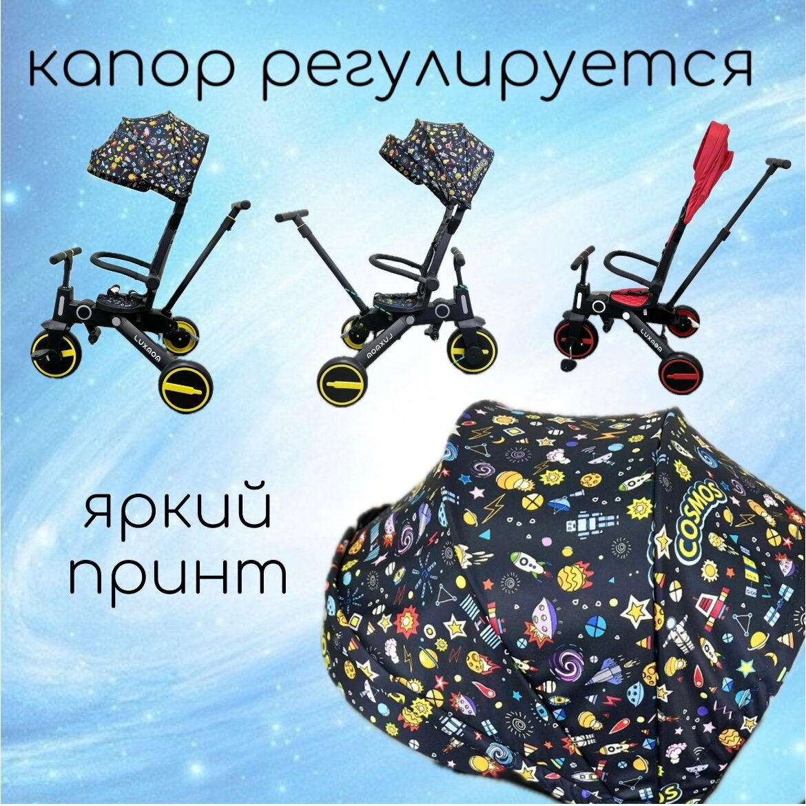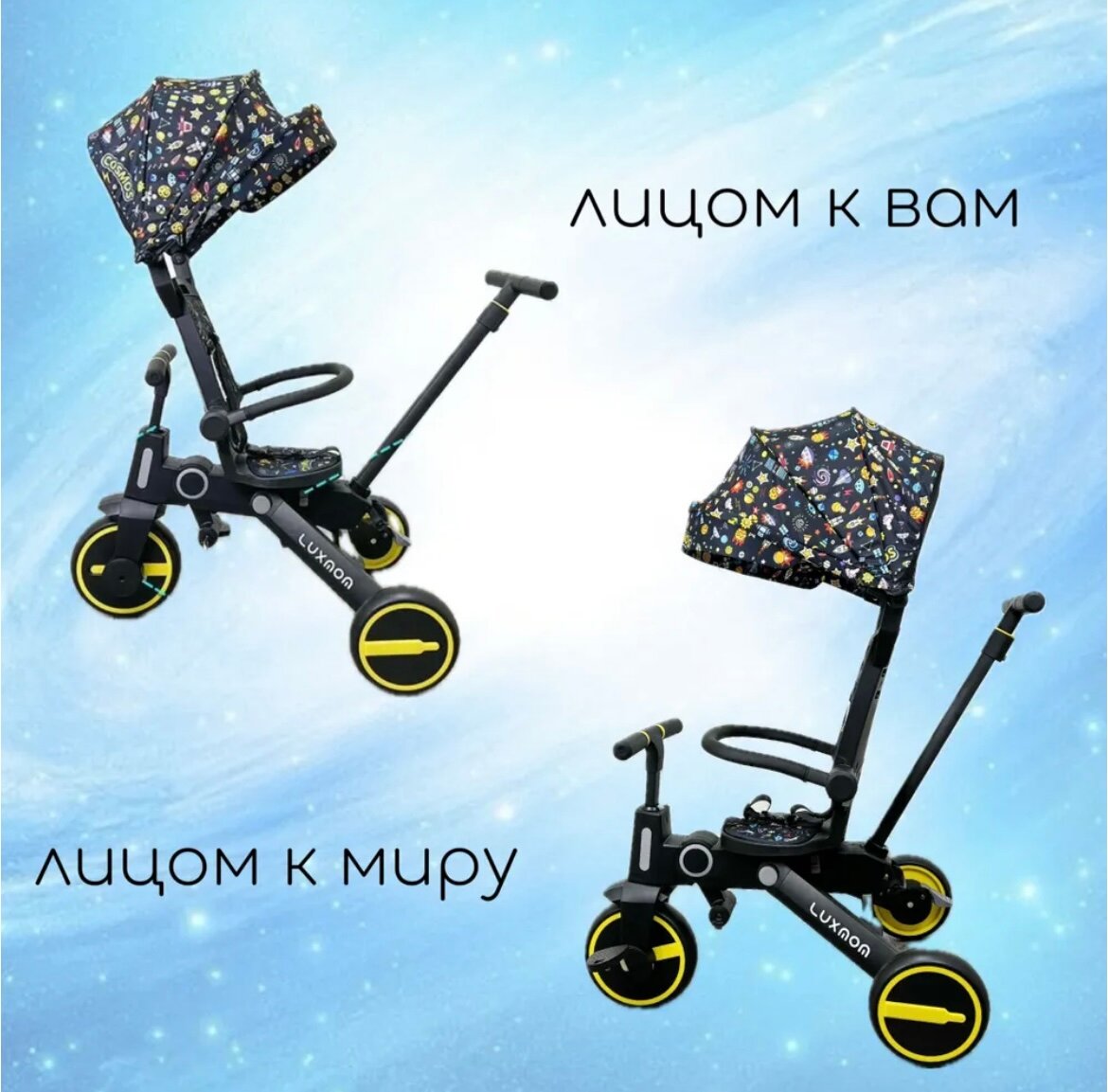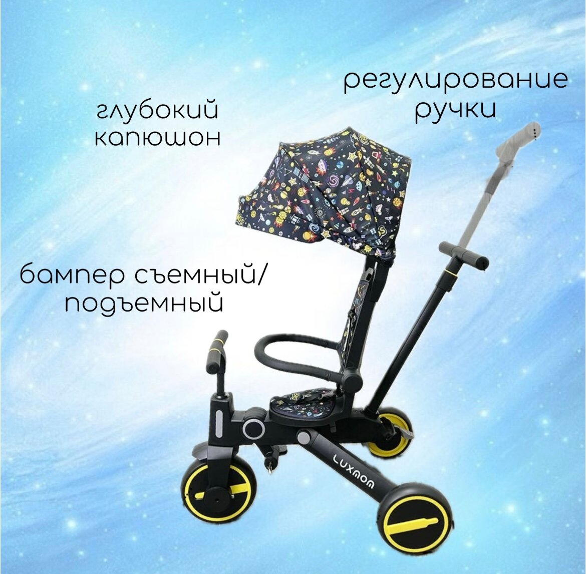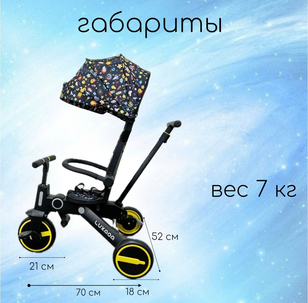 СохранитьВелосипед складной 3-колесный LUXMOM 368 желтый, складной, повортное сиденье, съемная родительская ручка интересное: