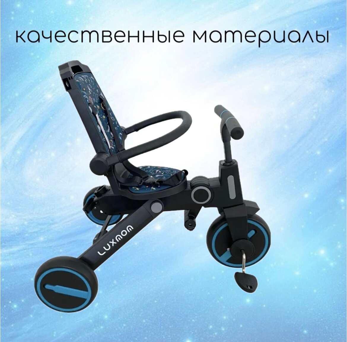 Трехколесный велосипед Luxmom 368 складной, поворот сидения, синий