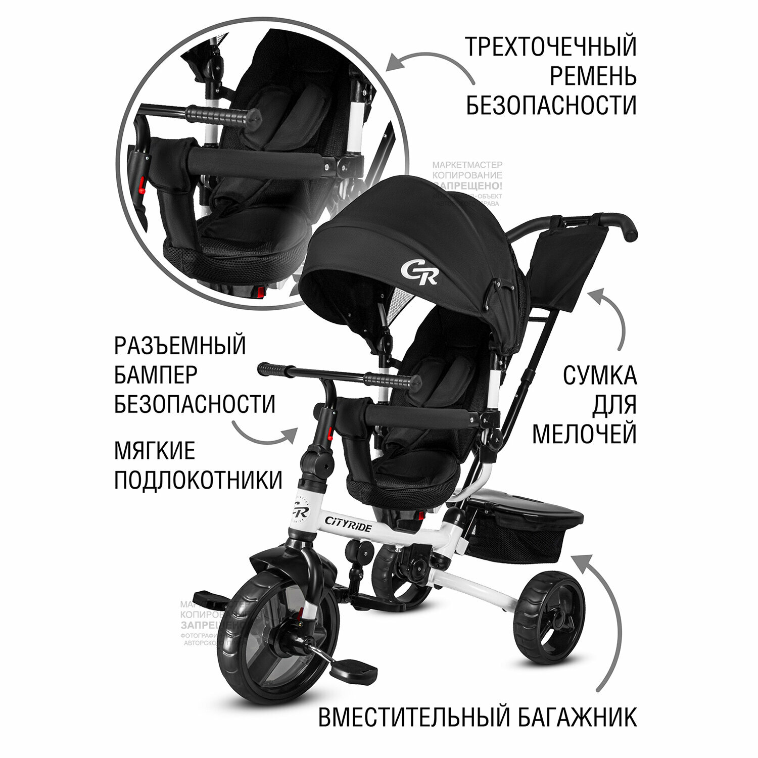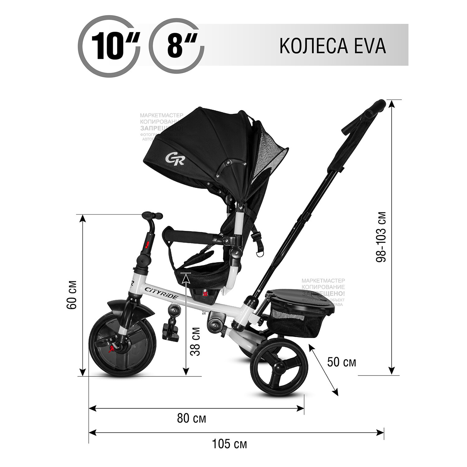 Велосипед детский трехколесный ТМ CITYRIDE, колеса ЕВА 10"/8", 120◦ наклон спинки, родительская ручка, сумка для мелочей, CR-B3-09EW