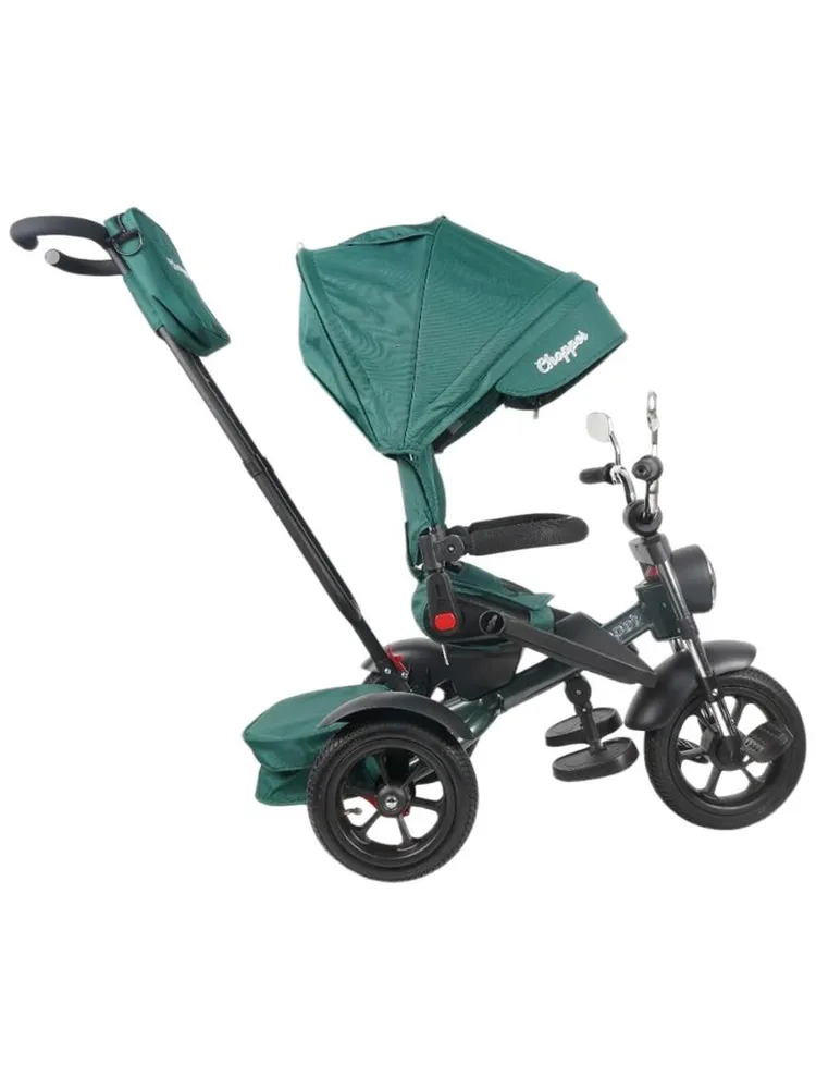 Велосипед трехколесный Chopper CH1-1 с фарой и солнцезащитной накидкой, модель 2024 года, зеленый