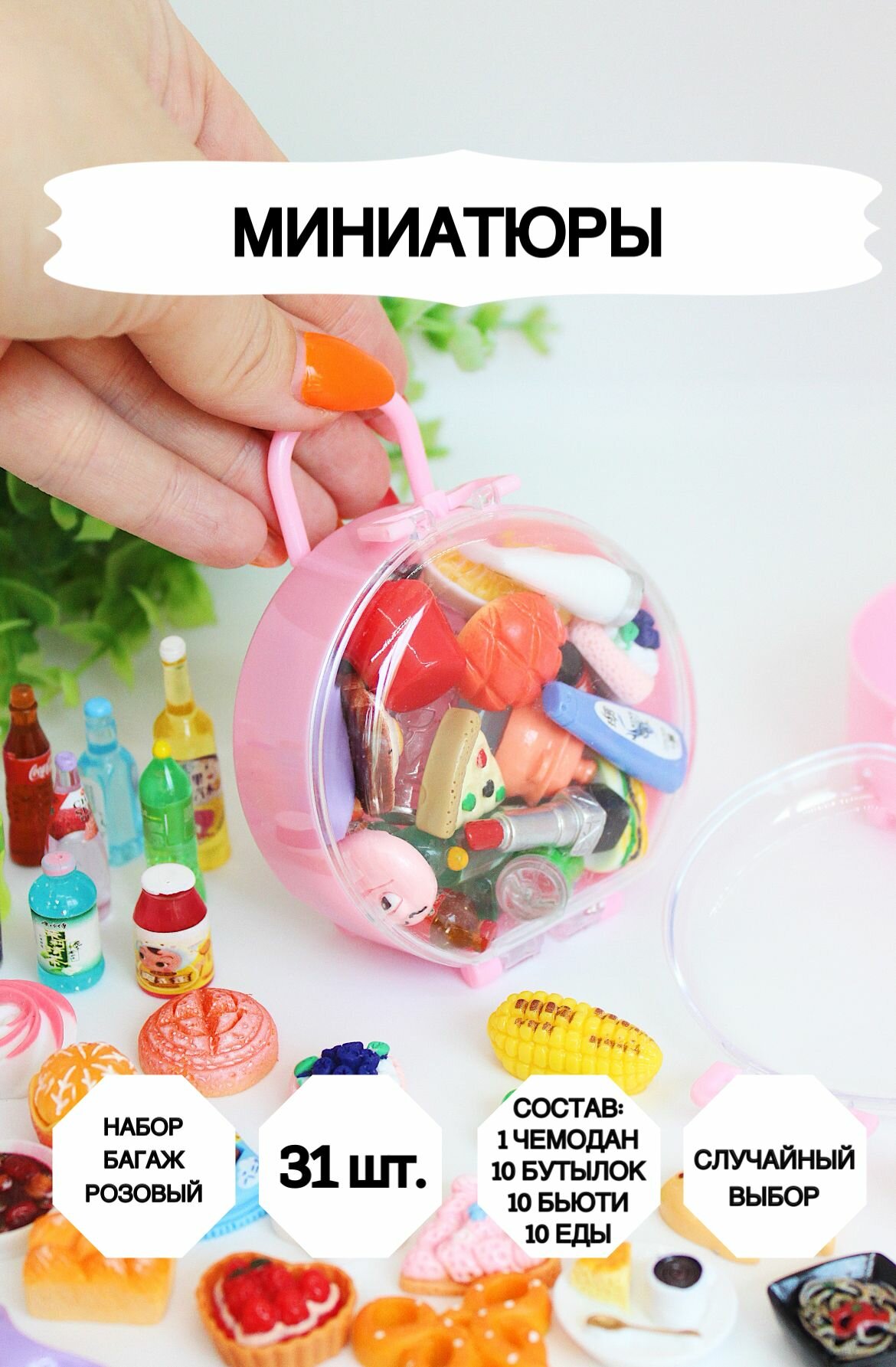 Чемодан Market13Salnik для кукол Барби, цвет розовый, 20 элементов еды