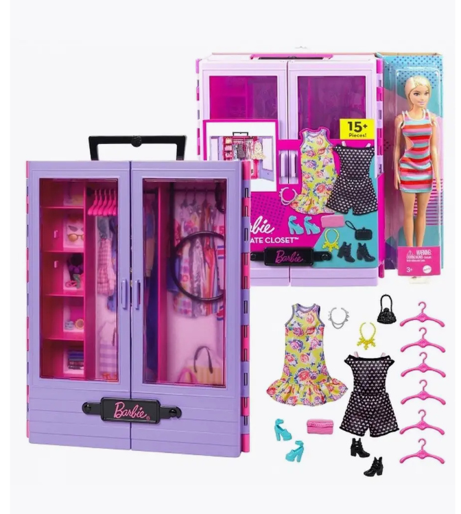 | Комплектация | модная кукла Barbie®, шкаф, а также 2 платья, 2 пары обуви, 2 ожерелья, 2 сумочки и 6 вешалок. |