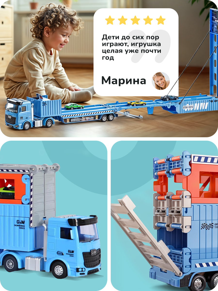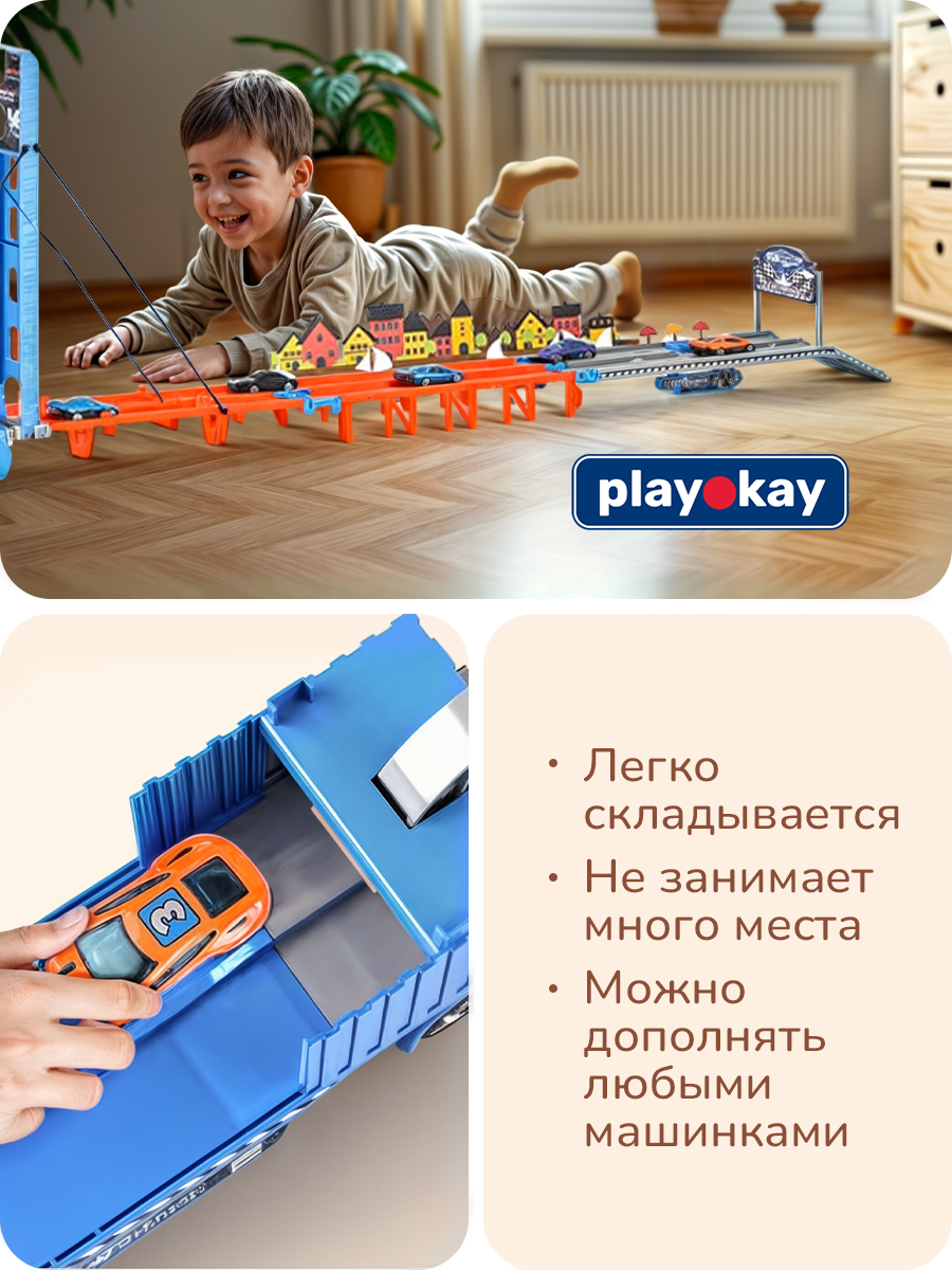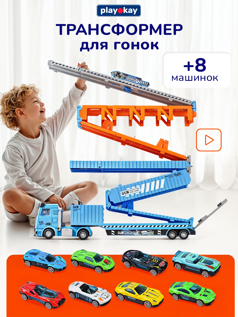 Play Okay Трейлер автовоз с машинками Со звуком и светом, 8 машинок интересное: