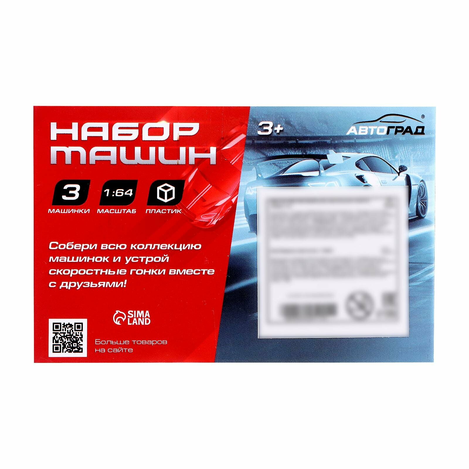 Купить Машина "Супергонщик" набор 3 штуки, пластик, цвета микс, Автоград, масштаб 1:64