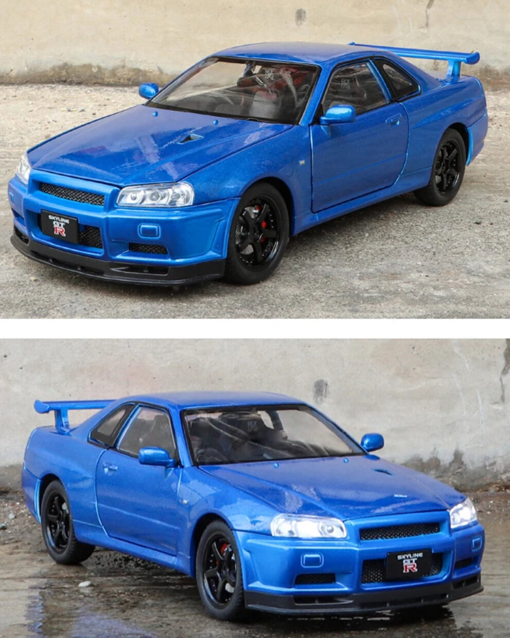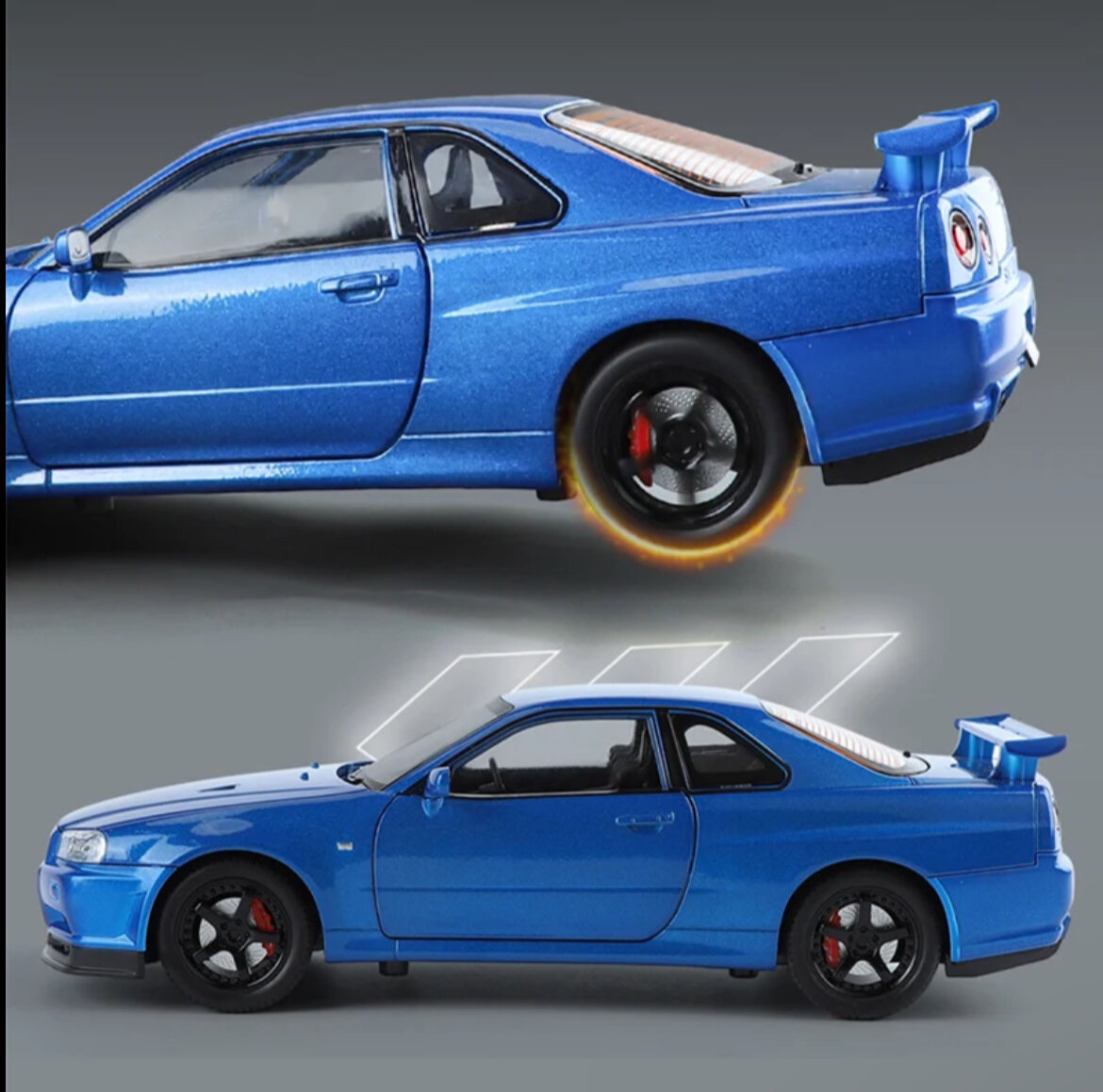 Коллекционная масштабная модель Nissan Skyline GT-R R34 1:24 (металл, свет, звук) интересное: