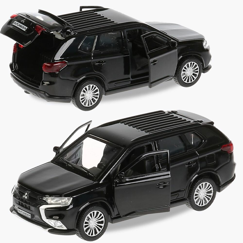 Машинка детская Mitsubishi Outlander 12 см, Технопарк, черная, открываются двери и багажник, металлический корпус
