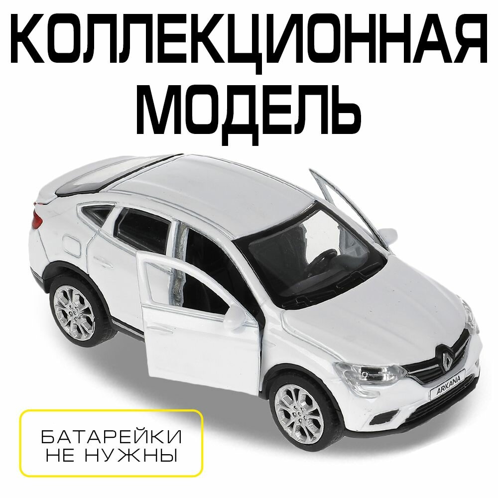 Машинка детская Renault Arkana 12 см, Технопарк, белый, открываются двери и багажник, металлический корпус