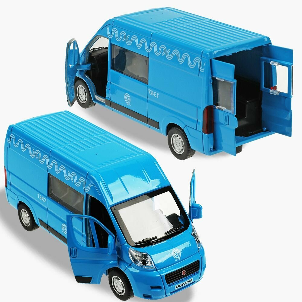 Машинка игрушка детская для мальчика Fiat Ducato Технопарк детская модель металлическая коллекционная инерционная с открывающимися дверьми синий 14 см