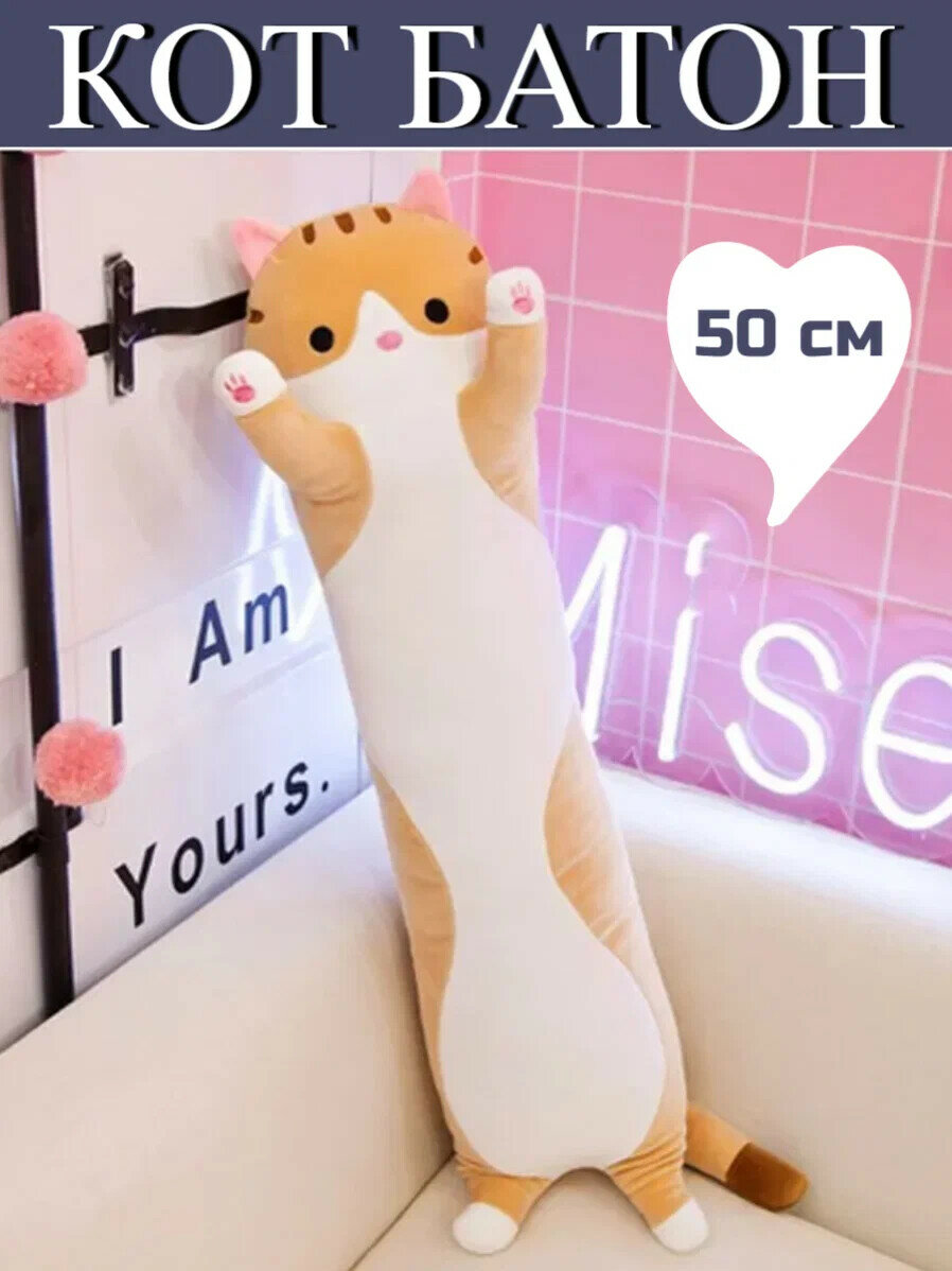 Купить Плюшевый кот батон, 50 см, рыжий