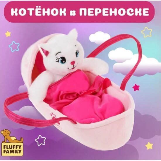 Купить Мягкая игрушка Fluffy Family 682306 Набор Котенок в переноске 19 см