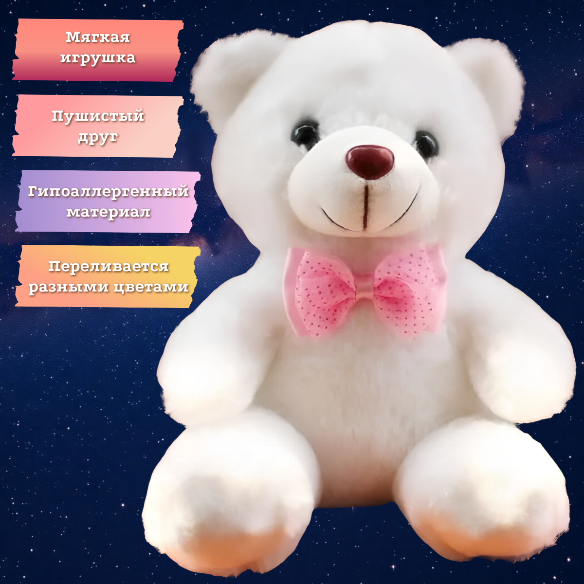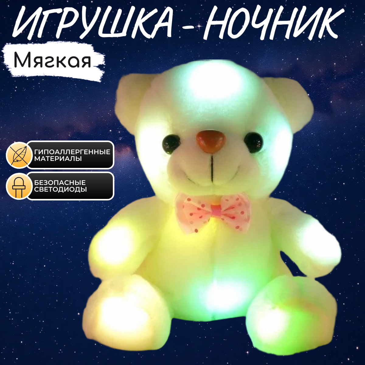 Мягкая игрушка Мишка светящийся / Плюшевый медведь для детей / Белый медвежонок ночник в детскую комнату, 23 см интересное: