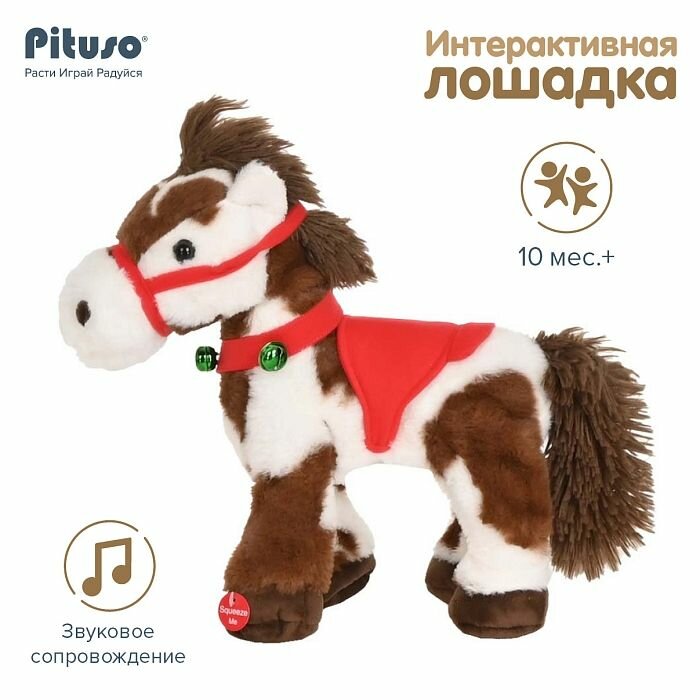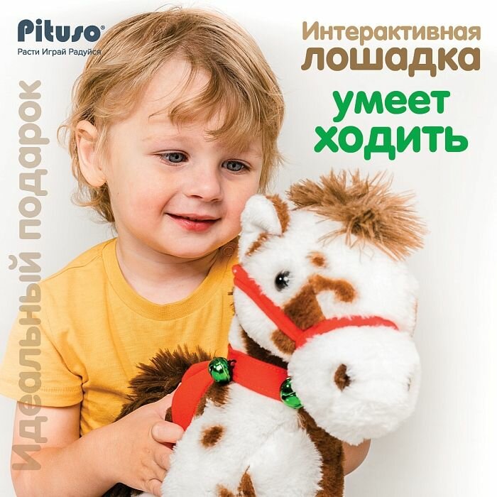 Мягкая игрушка Pituso "Маленькая лошадка", ходит вперед, виляет хвостом и мотает головой, звуковое сопровождение, цвет бело-коричневый интересное: