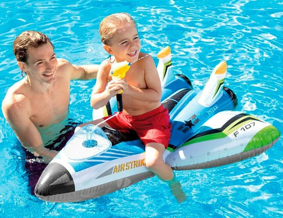 Надувная игрушка Самолет с водяным пистолетом INTEX синий, 117х117 см, от 3 лет, 57536-синий интересное: