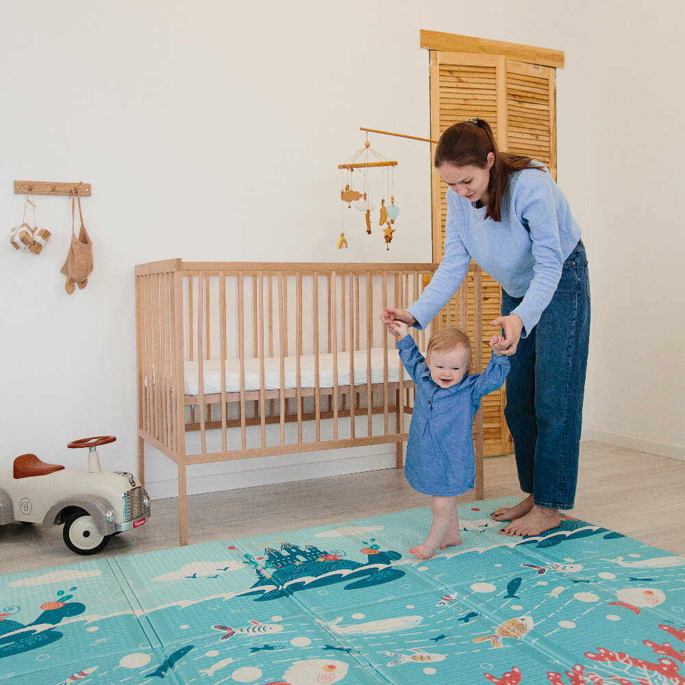 Купить Складной игровой детский коврик Parklon Portable "Подводный мир" безворсовый, развивающий для ползания малышей, 140x200