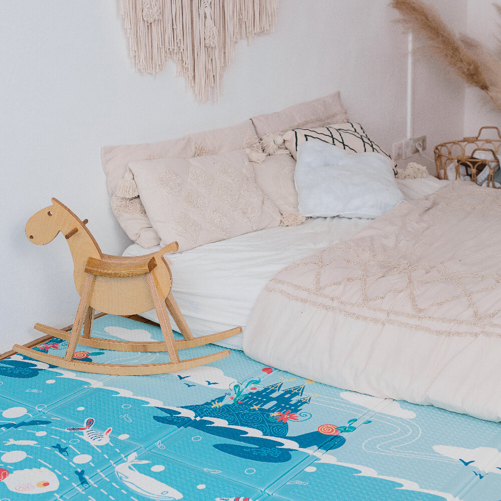Складной игровой детский коврик Parklon Portable "Деревянные лошадки" безворсовый, развивающий для ползания малышей, 140x200