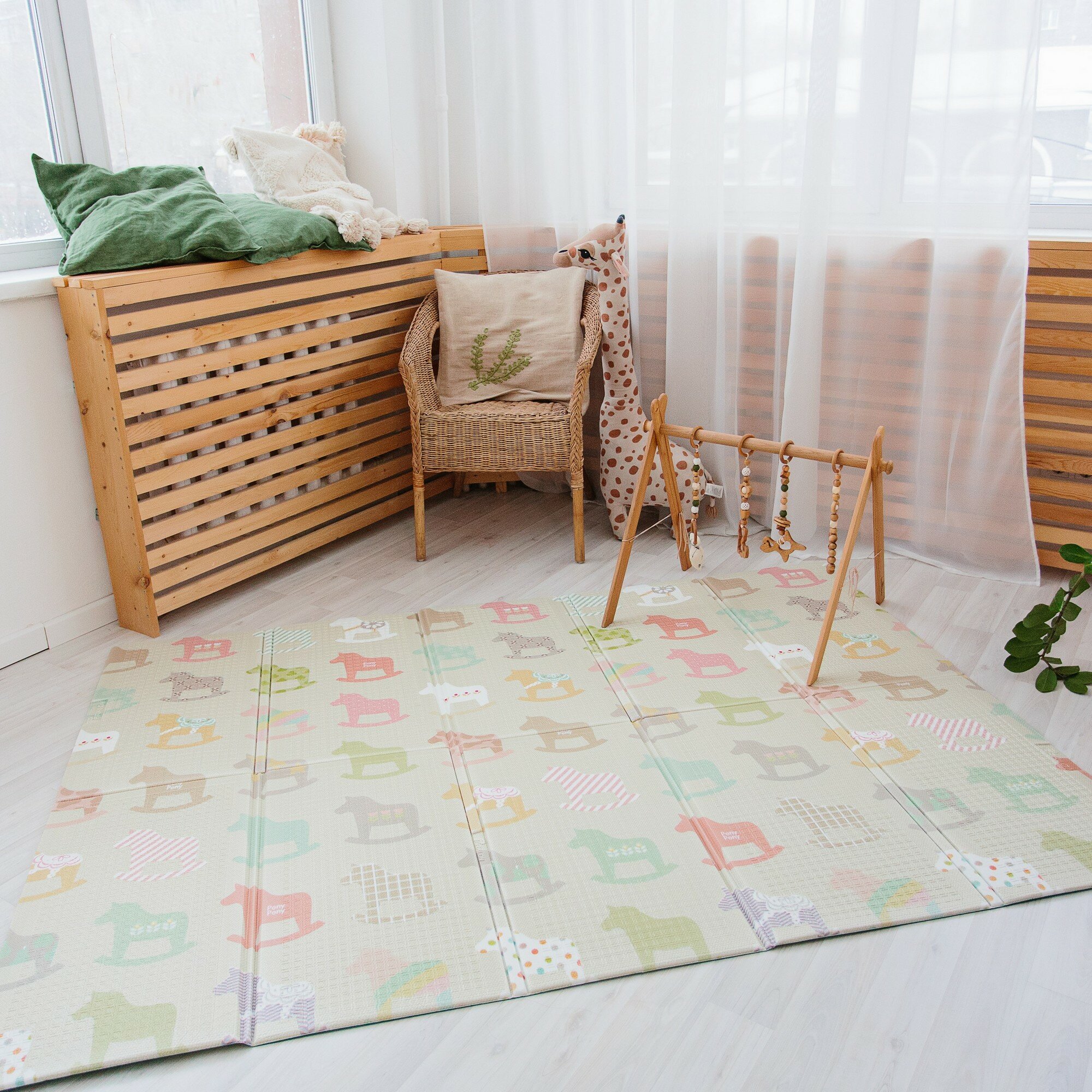 Купить Складной игровой детский коврик Parklon Portable "Деревянные лошадки" безворсовый, развивающий для ползания малышей, 140x200