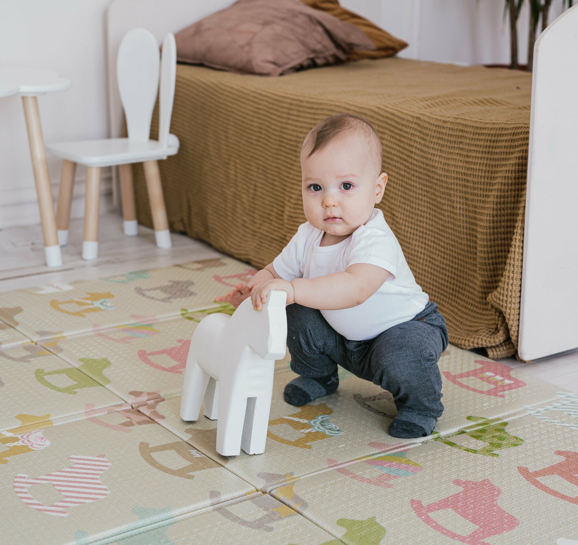 СохранитьСкладной игровой детский коврик Parklon Portable "Деревянные лошадки" безворсовый, развивающий для ползания малышей, 140x200 интересное: