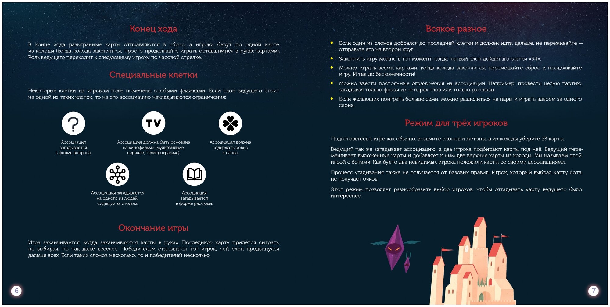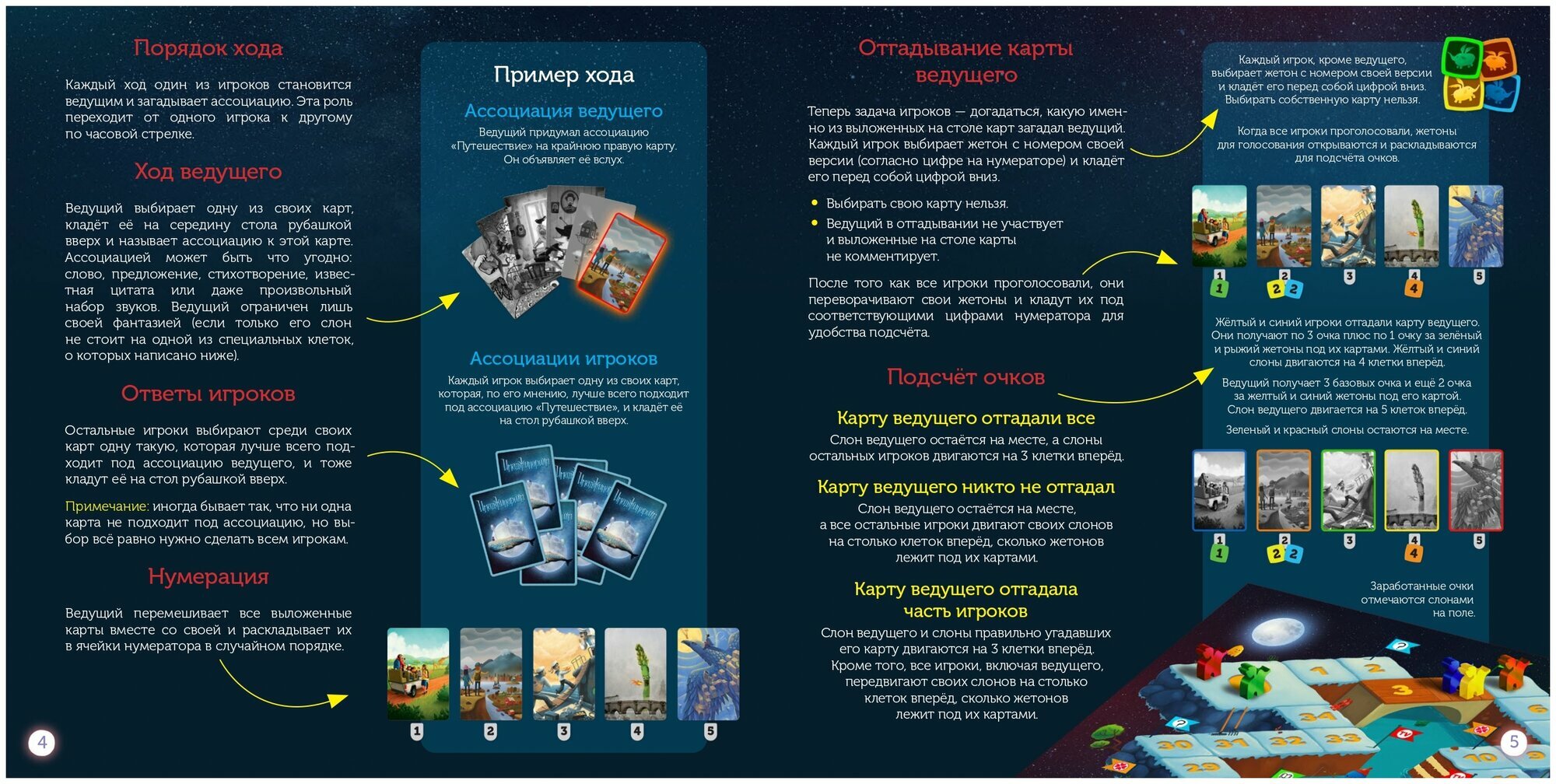 | Комплектация | игровое поле, 64 карты ассоциаций, 5 фигурок сайгаков, 30 жетонов голосований, правила игры |